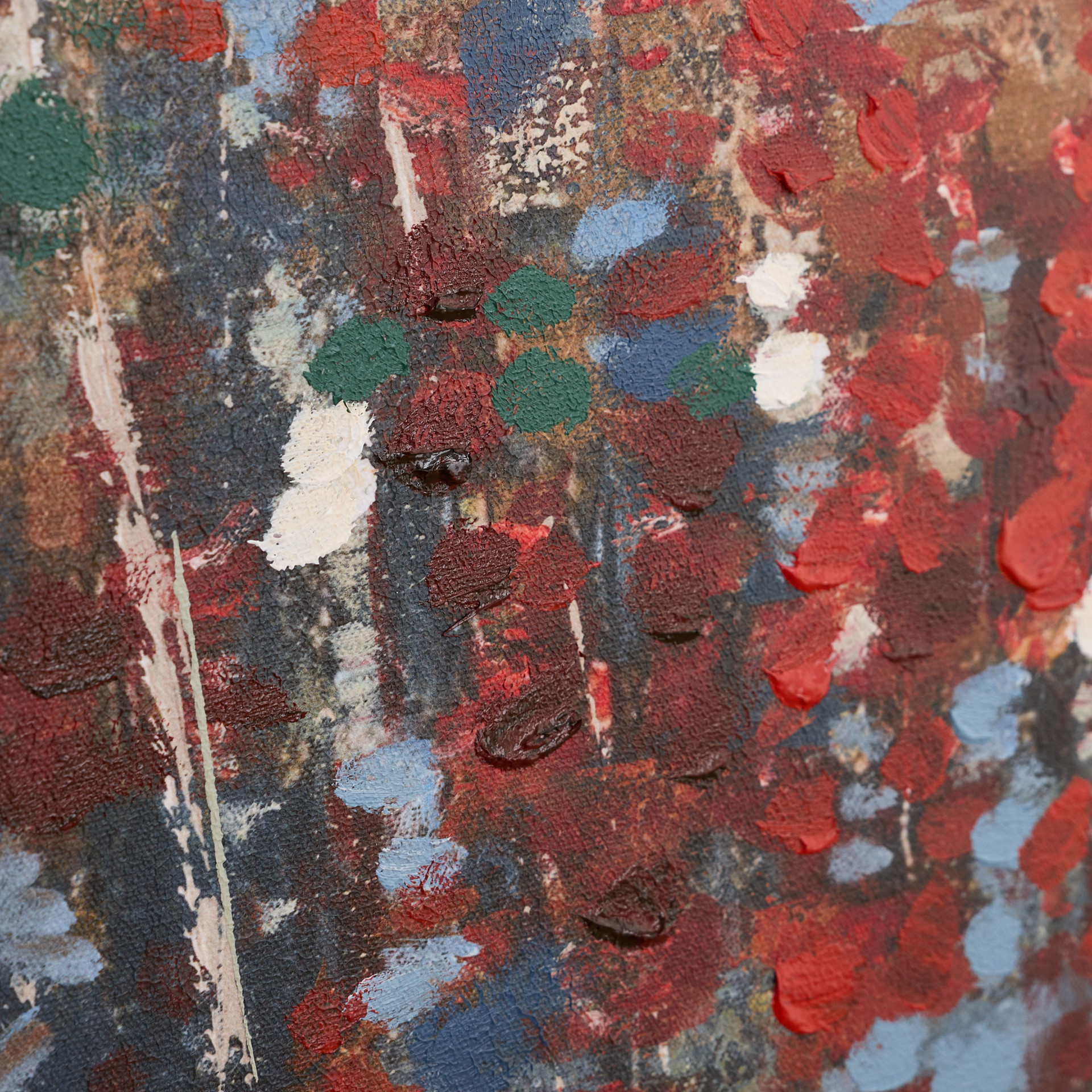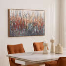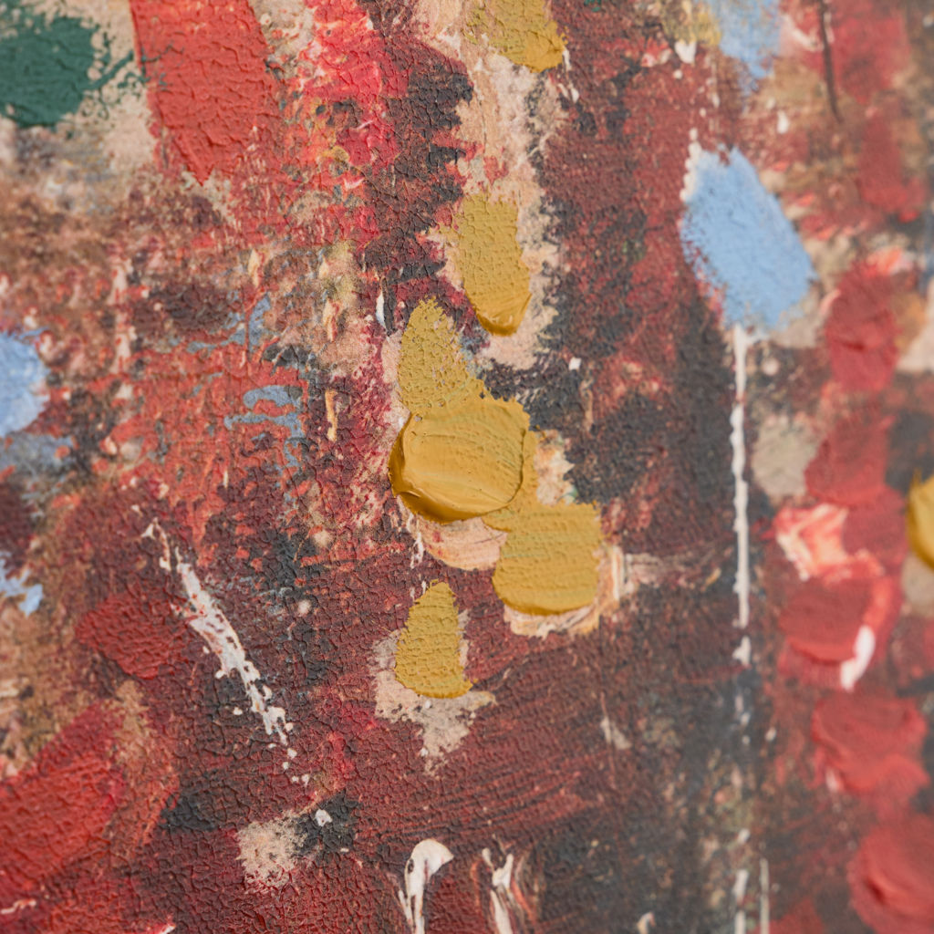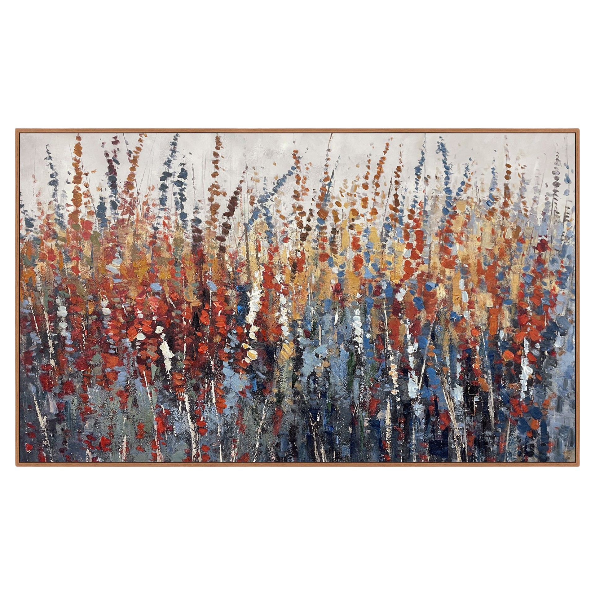 Apportez une touche vibrante à votre décor avec ce tableau rempli de couleurs chaleureuses et dynamiques. Ses touches de rouge, d’orange, de bleu et de blanc créent un mouvement visuel séduisant qui attire immédiatement le regard.