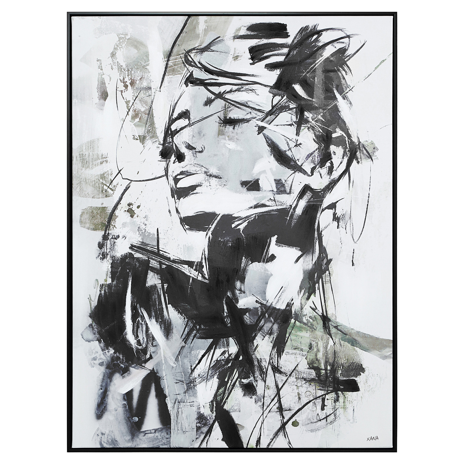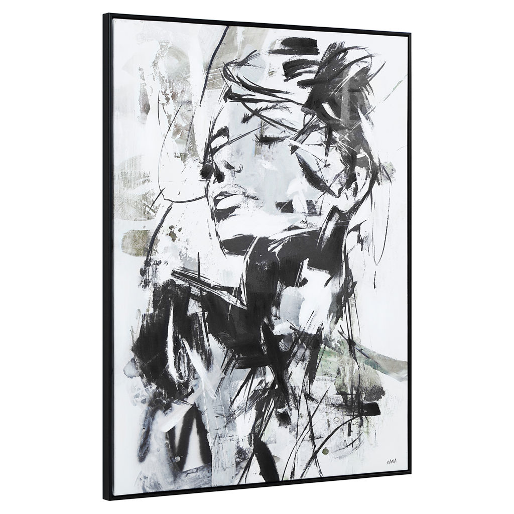 Regardez trop vite et vous risquez de manquer la beauté cachée dans cette peinture abstraite. Créée dans des tons de noir et de teintes neutres, la silhouette féminine subtile vous attire et fait rebondir votre regard le long de sa surface texturée.