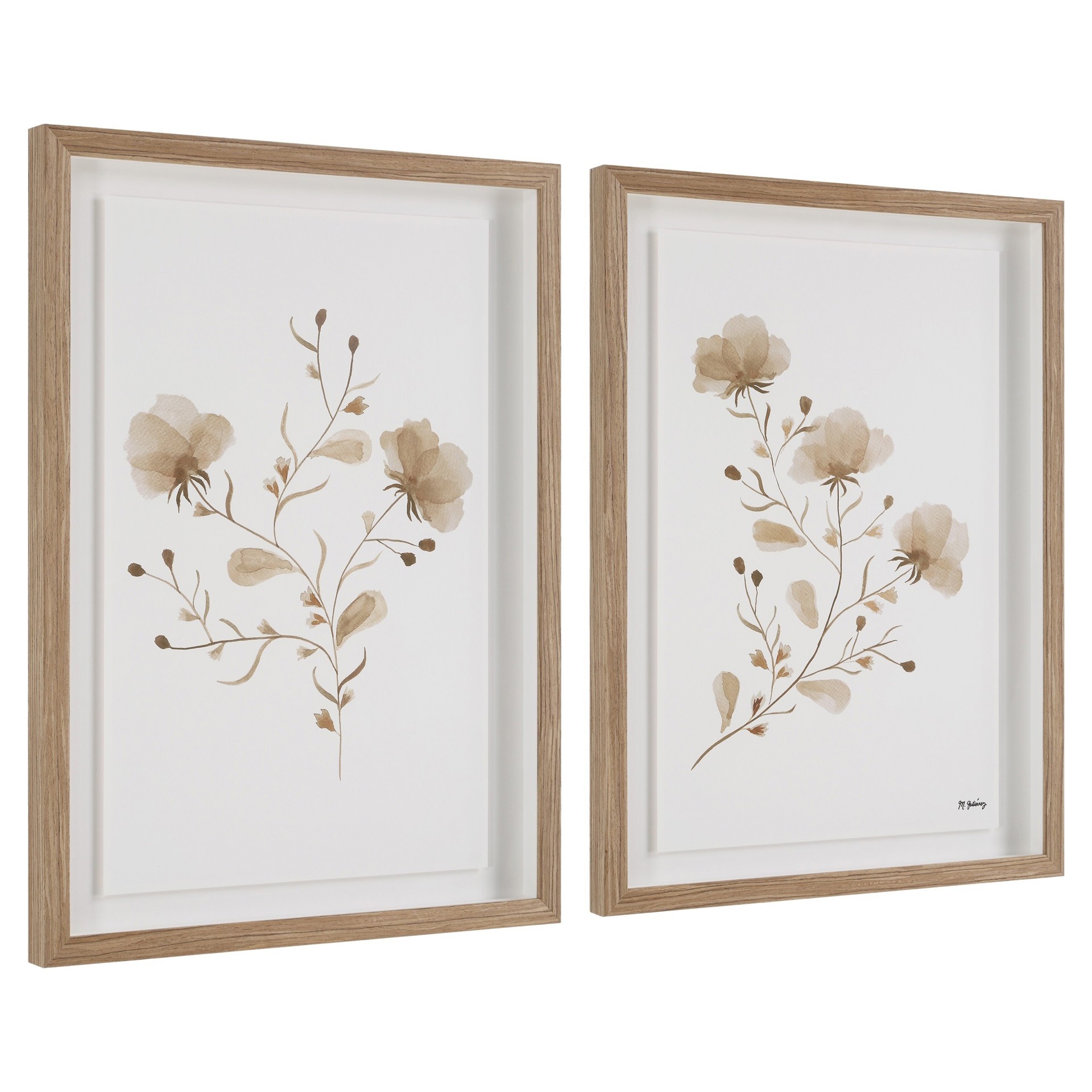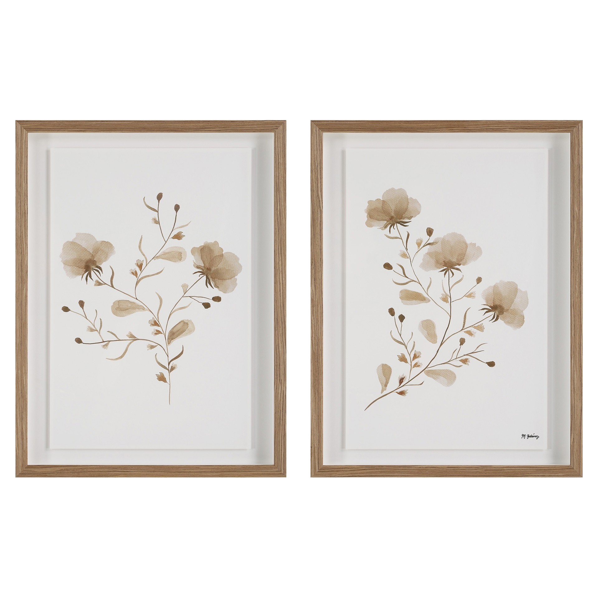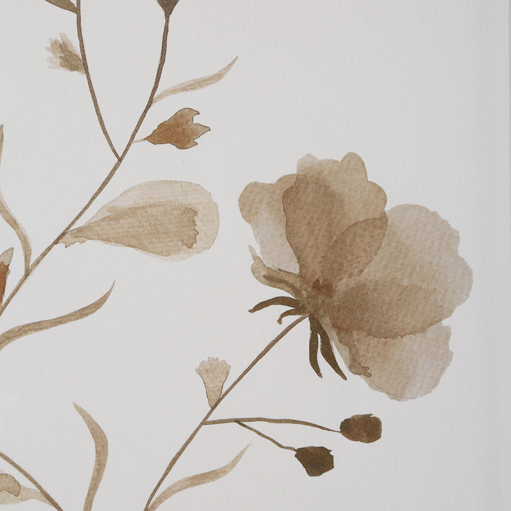 Encadrées dans du noyer moyen et imprimées dans des tons chauds de brun, ces deux fleurs délicates apportent une touche naturelle et un charme intemporel à tout intérieur.