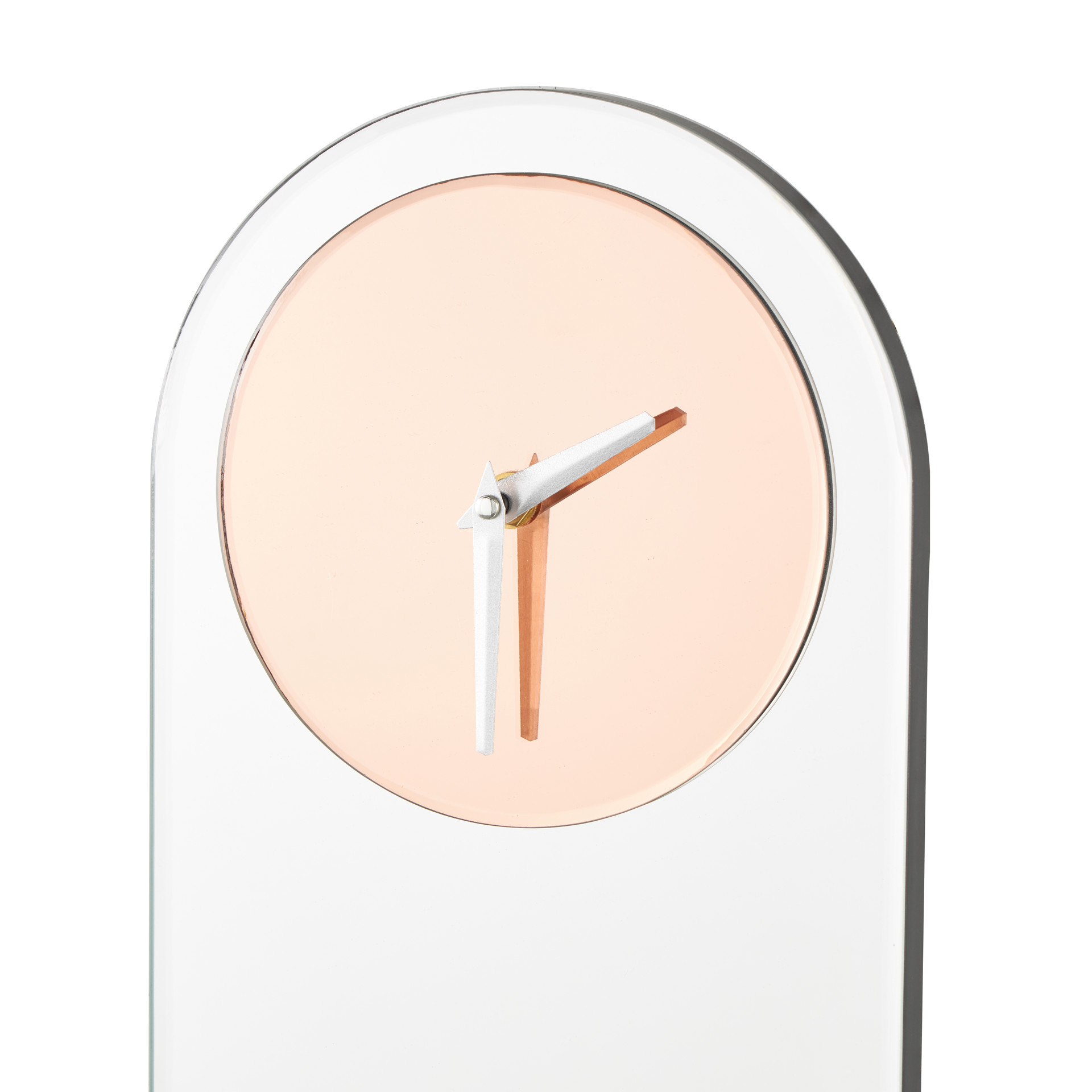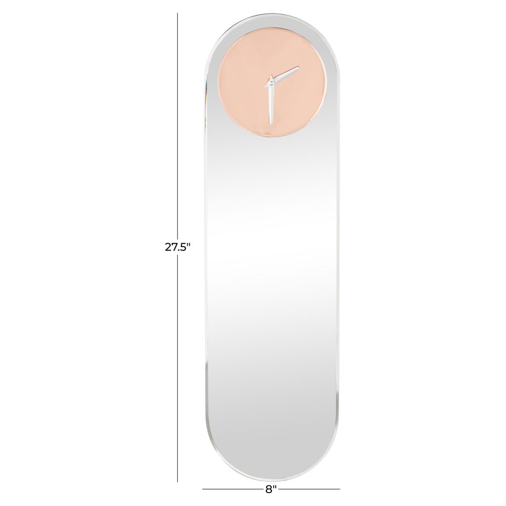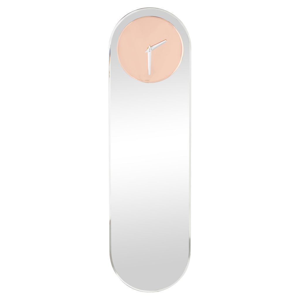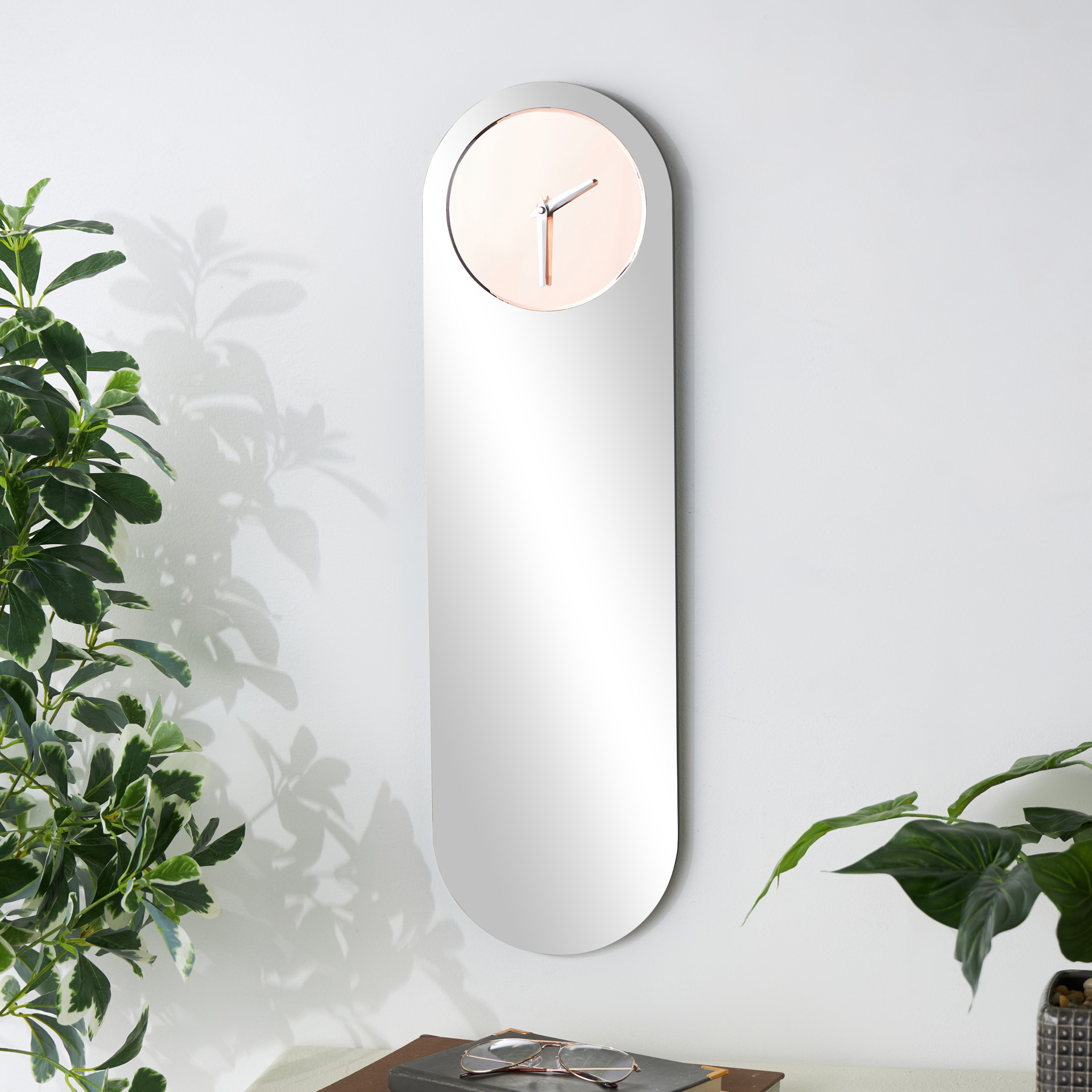 L'horloge murale ovale présente une superbe combinaison d'argent et de rose avec une finition miroir.