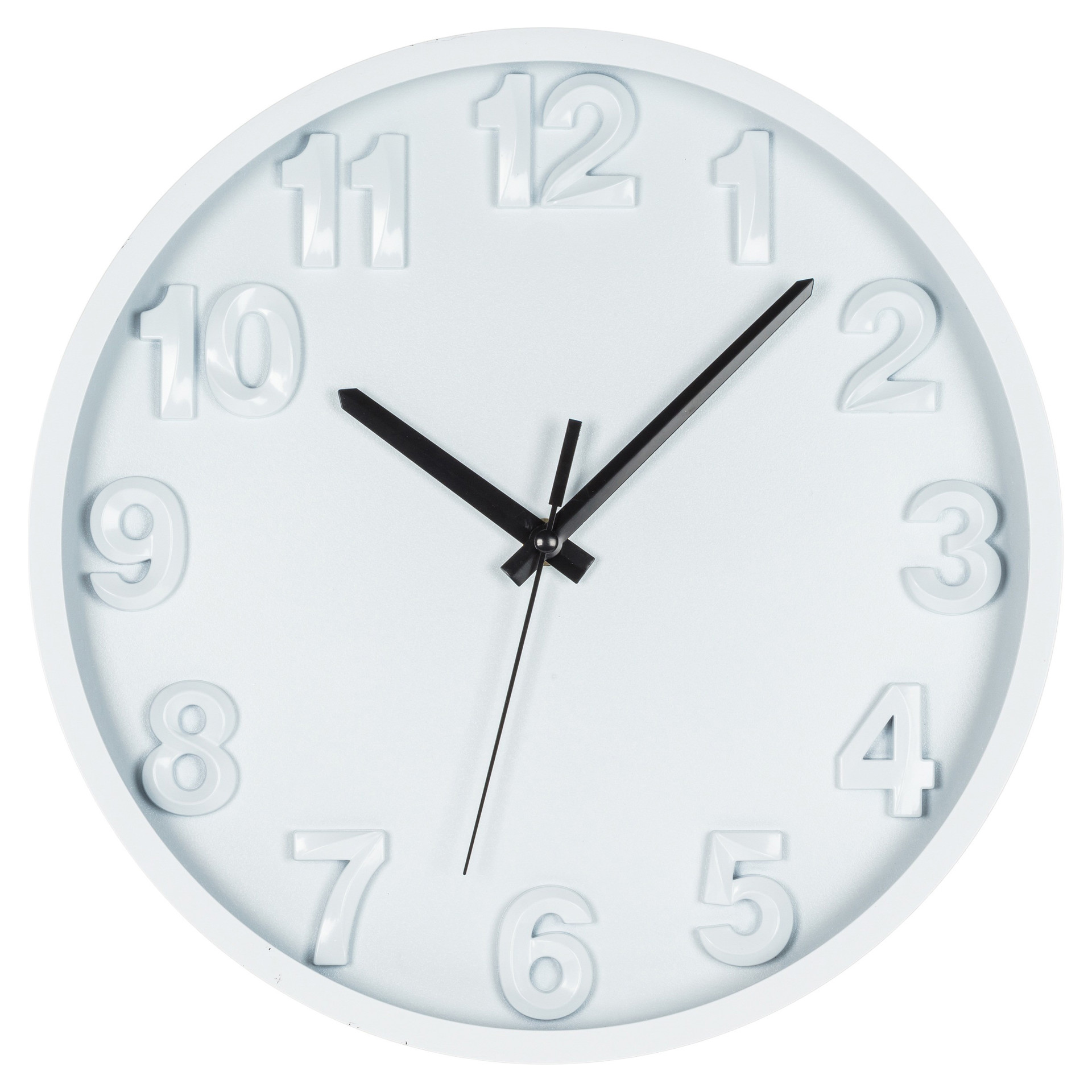 Ajoutez un style discret à votre environnement sans jamais perdre la notion du temps avec cette horloge murale à chiffres audacieux. Cette horloge murale aux bras noirs décalés présente un style à la fois frappant et austère, avec des chiffres audacieux et surélevés de couleur claire, pour un complément distinctif mais subtil à tout type de décor.