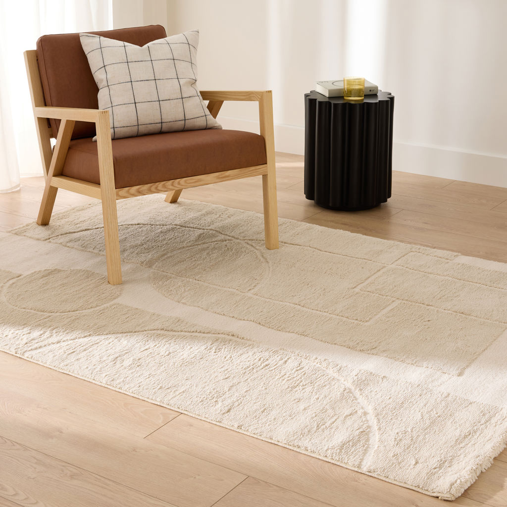 Découvrez le confort et le style avec notre tapis Sherpa, doté d'un design minimaliste dans des tons crème ivoire.