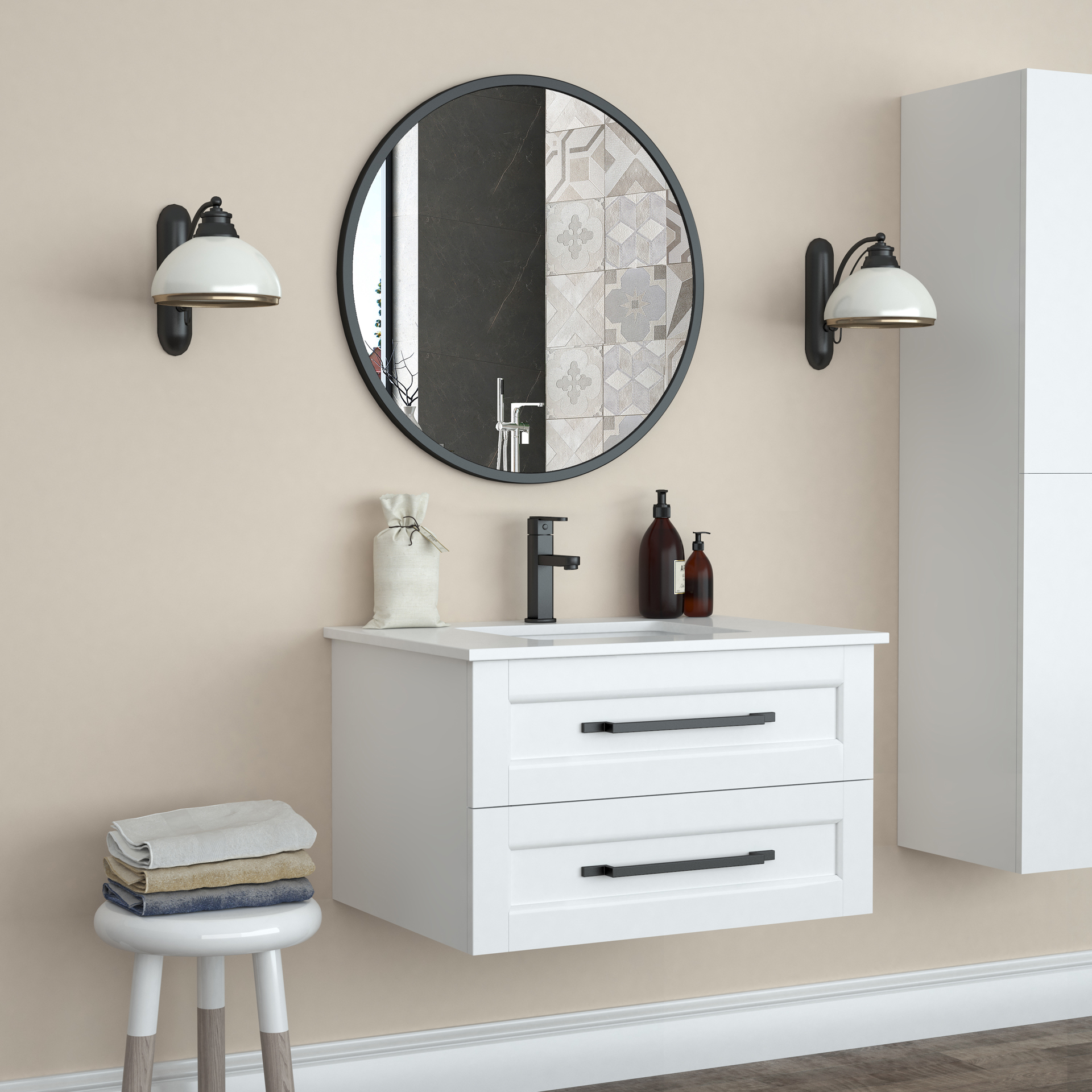 Miroir rond encadré noir 28 po Wainwright