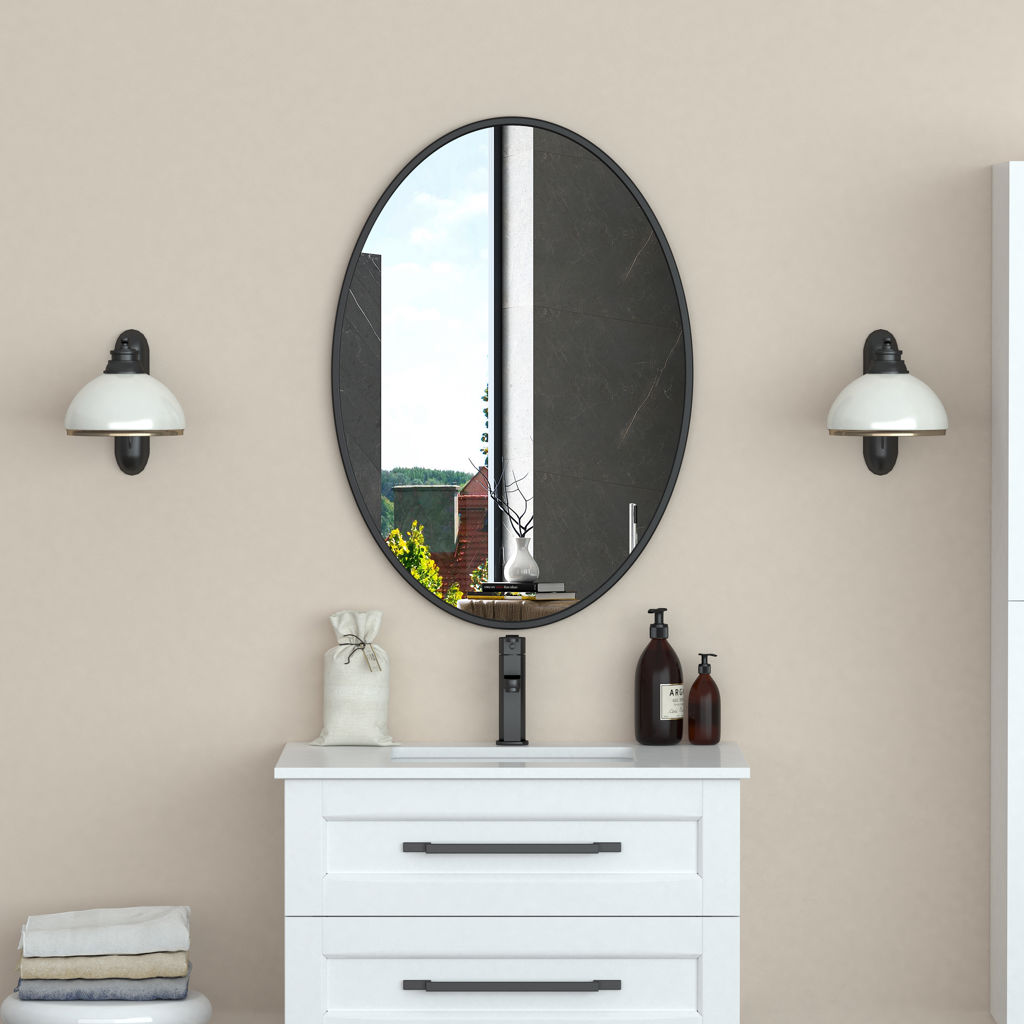 Ce miroir ovale est doté d'un cadre en métal à la fois décoratif et élégant. Conception moderne et épurée qui s'intègre parfaitement à tout décor. Renouvelez le style de votre salle de bain, de votre chambre ou de votre vestibule grâce à ce miroir aussi durable qu'élégant.
