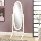 Ce miroir de type cheval sur pied fini de couleur blanc antique sera un superbe ajout au décor contemporain de votre chambre à coucher principale. Ce miroir à la forme ovale est pivotant pour vous aider à obtanir l'angle de vue que vous désirez. Avec son cadre détaillé et ces lignes courbées, ce miroir saura s'agencer facilement au décor de votre chambre à coucher. Apparence traditionnelle. Superbe dans votre chambre à coucher. Miroir pivotant vous offrant plusieurs points de vue. Base courbée et robuste. Bois solide fini de couleur brun acajou.