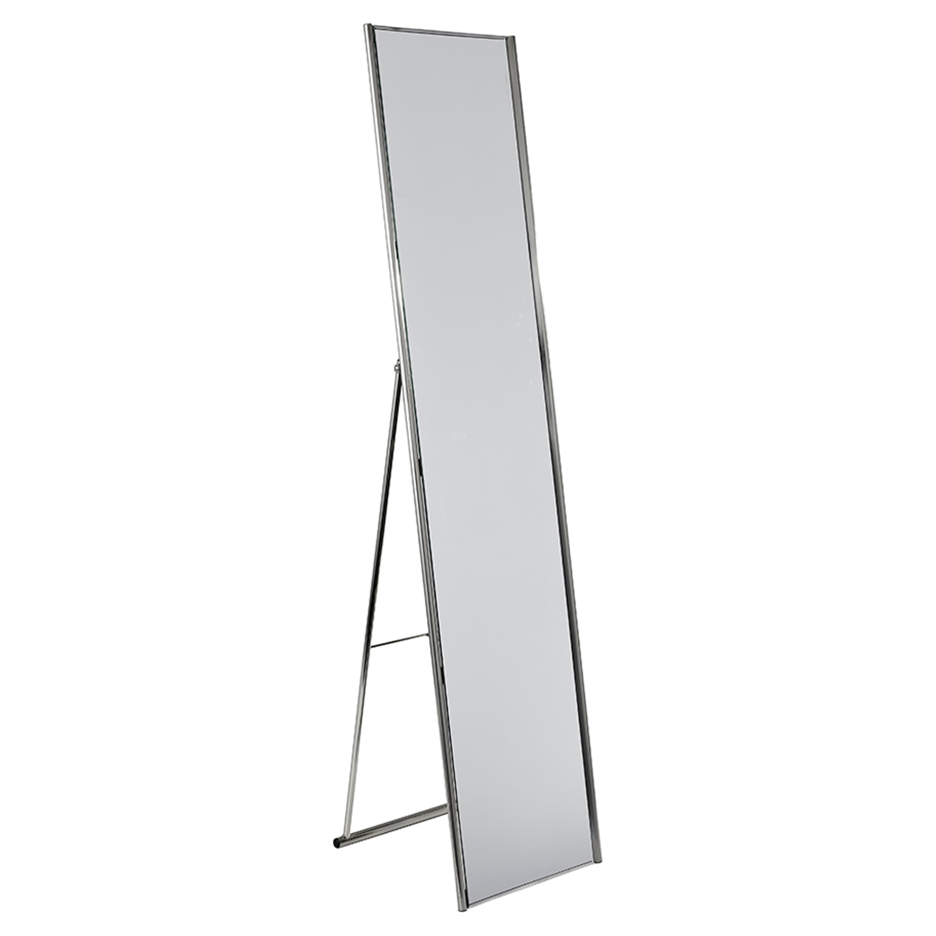Le miroir de sol pliant Alice est le complément idéal à la chambre à coucher ou au salon. Le cadre subtil a une finition en acier champagne enduit de poudre et un biseau droit et gauche d'un quart de pouce. Le miroir entier se plie à une profondeur de 2 pouces pour le rangement.