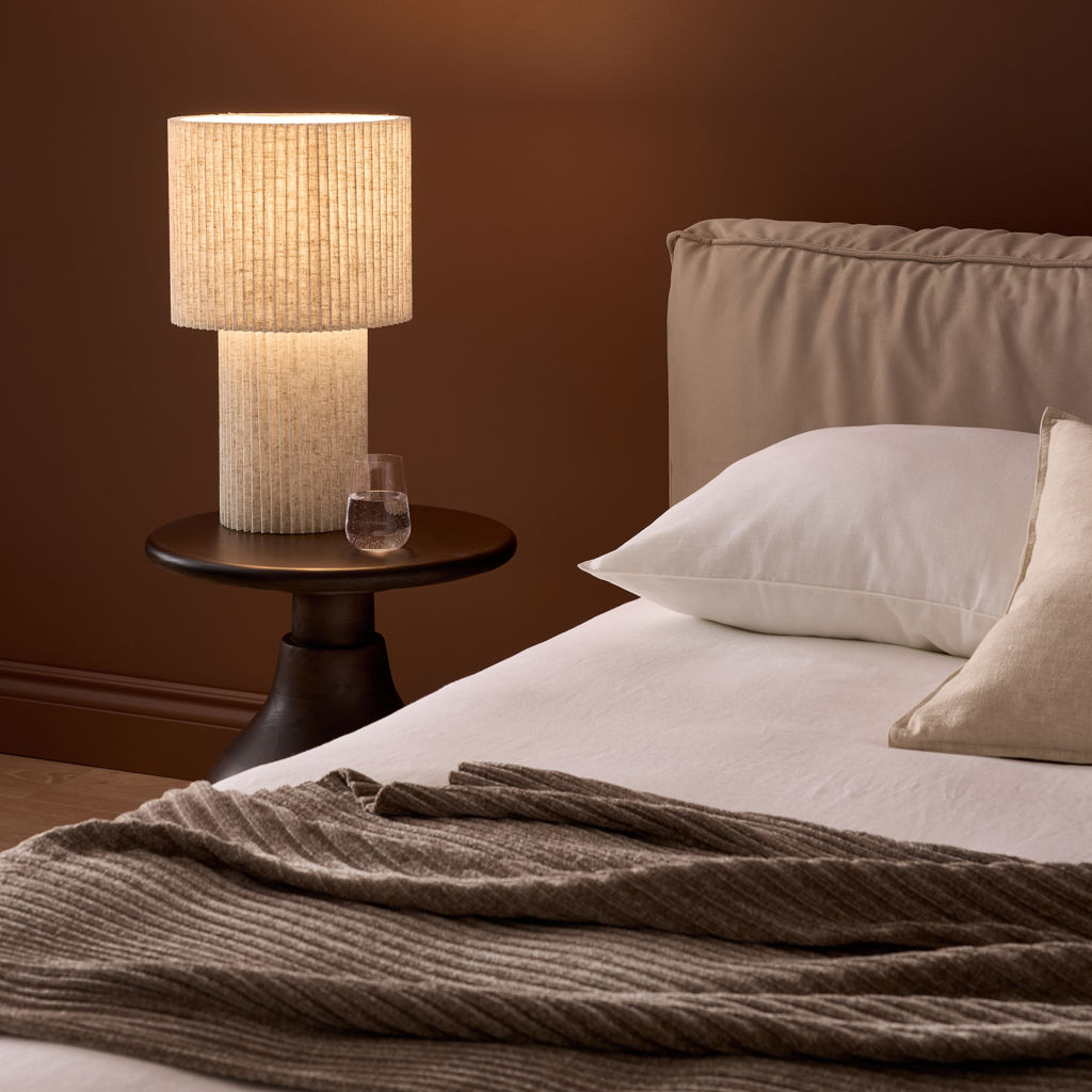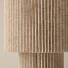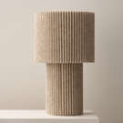 Les plis sont régulièrement espacés, ce qui donne un aspect symétrique.Cette lampe de table est conçue pour offrir un éclairage doux et chaleureux, parfait pour créer une atmosphère chaleureuse dans les salons, les chambres à coucher ou les bureaux.