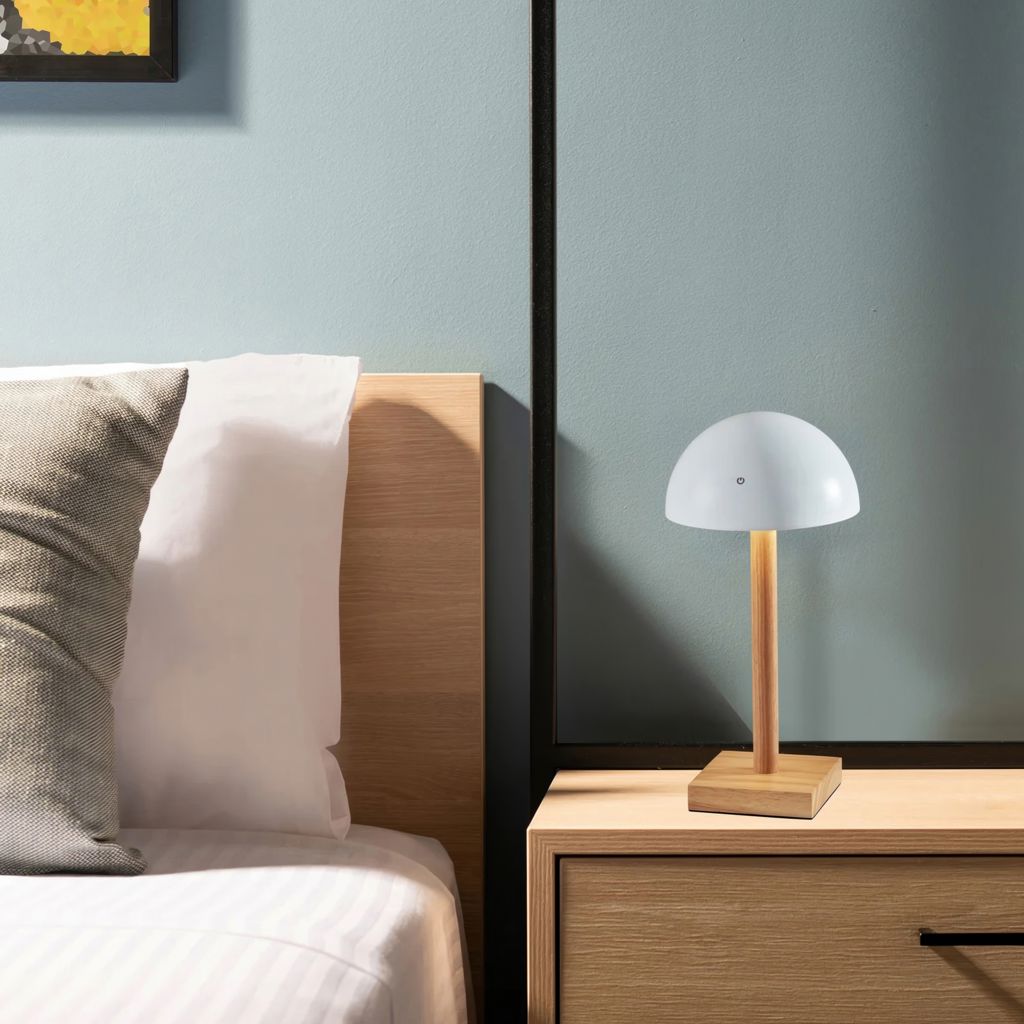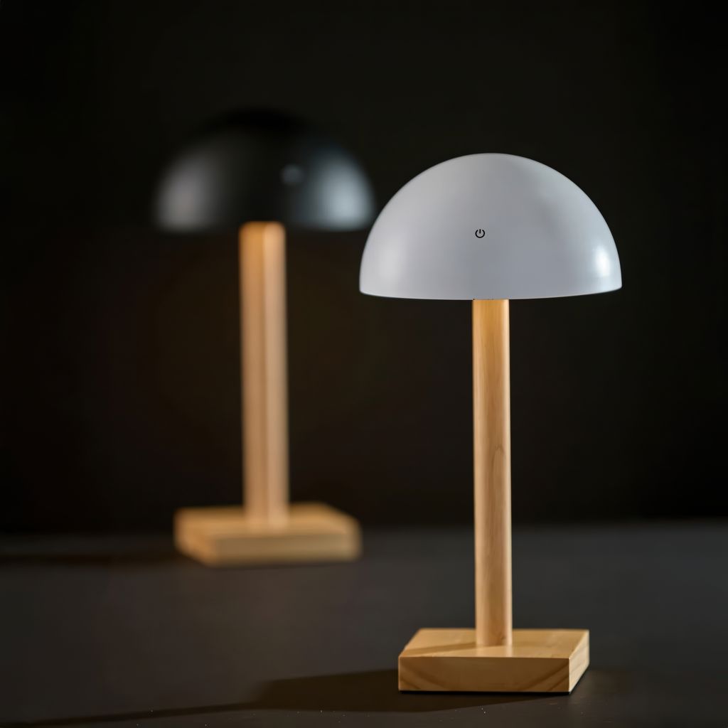 Une solution d'éclairage élégante et fonctionnelle conçue pour la vie moderne. Dotée d'une base en bois naturel et d'un abat-jour blanc en forme de dôme, cette lampe allie sans effort style contemporain et chaleur organique.