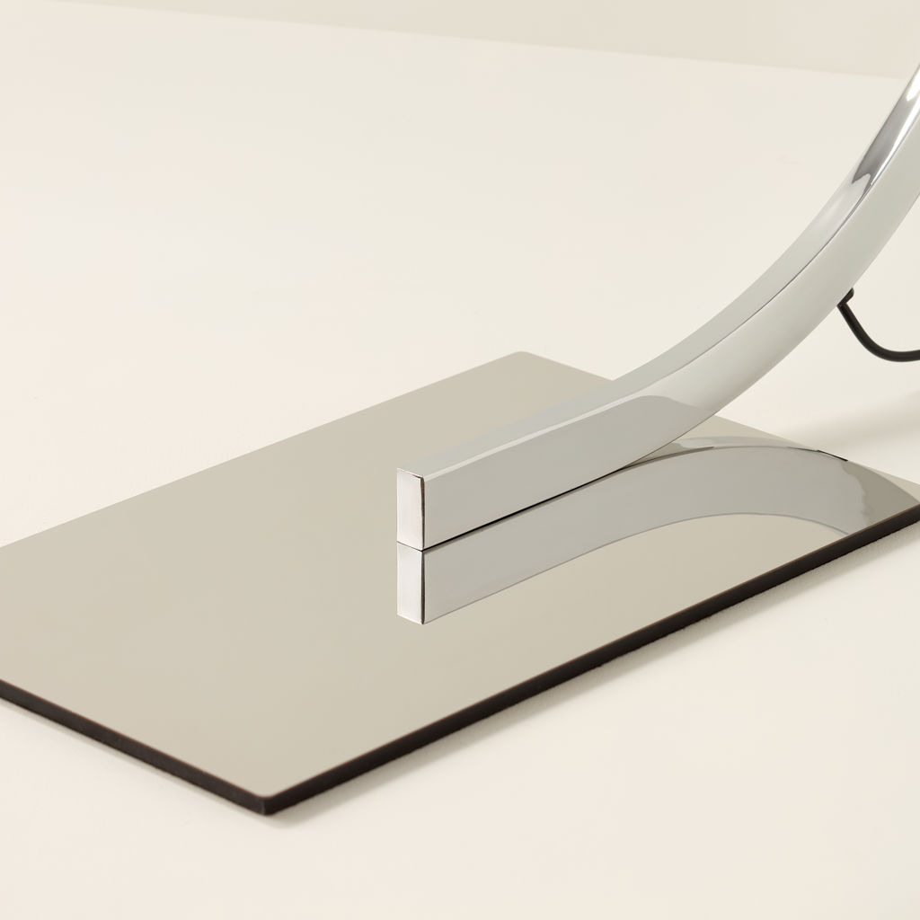 Faisant reposer toute son élégance sur sa courbe expertement dessinée, cette lampe sur pied minimaliste, d’une esthétique distillée jusqu’à ses traits les plus simples, rehausse le style d’un intérieur au dépouillement étudié.