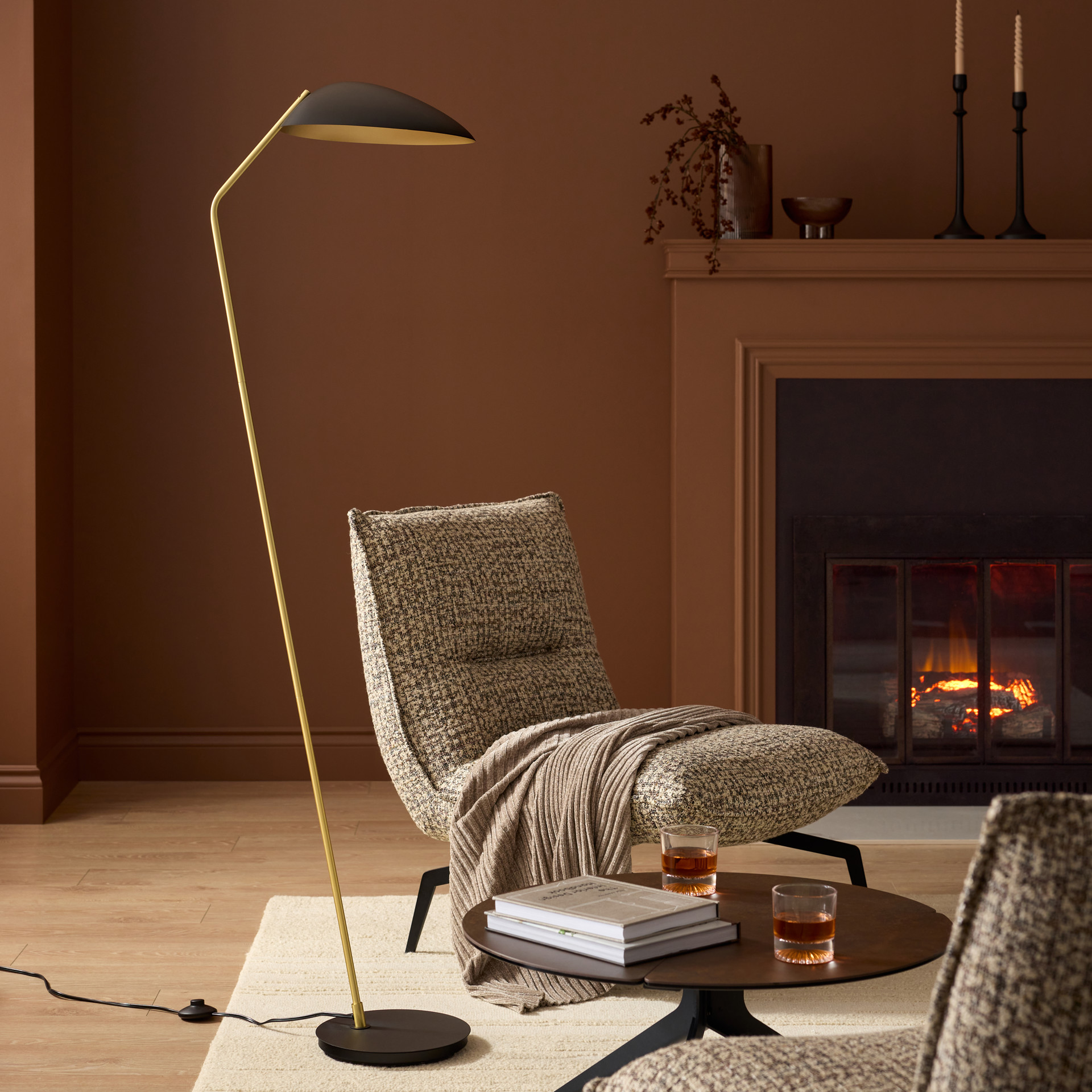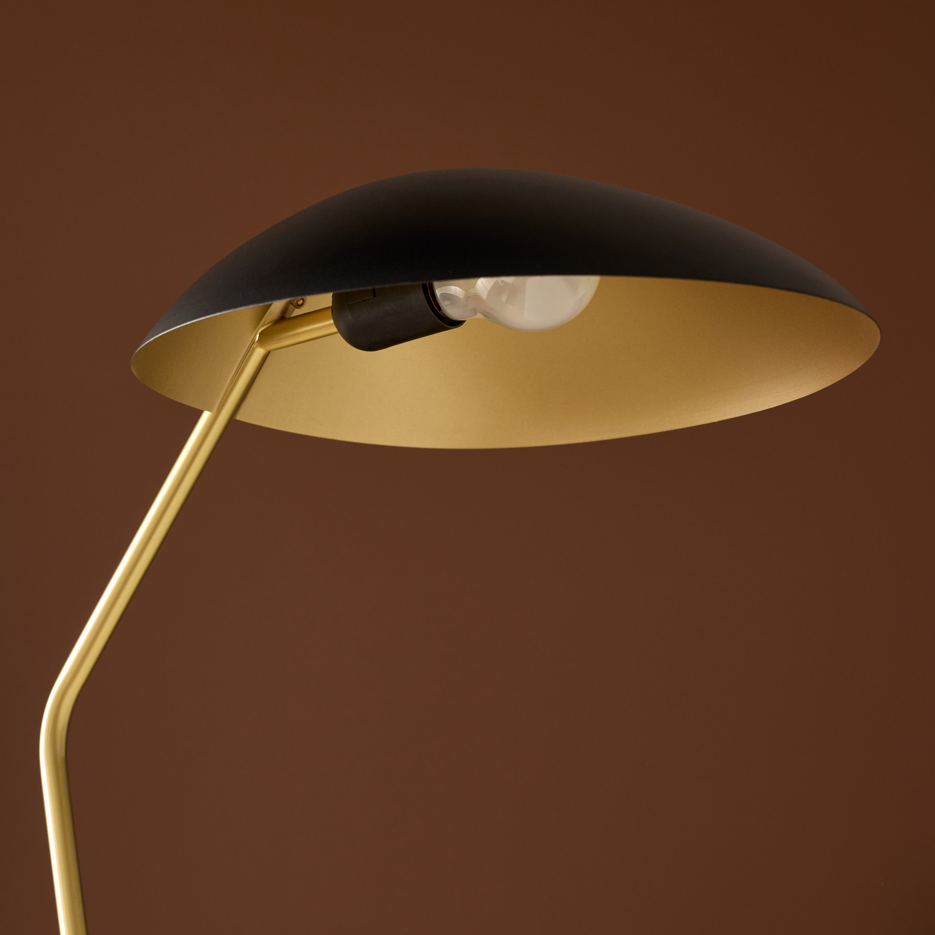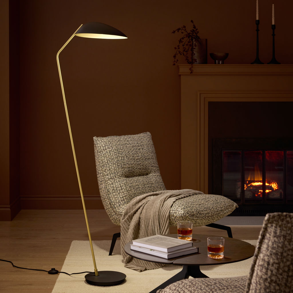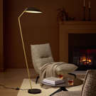 Illuminez votre salon en style avec la lampe de plancher noir Lindmoor avec abat-jour en laiton brossé en dôme.