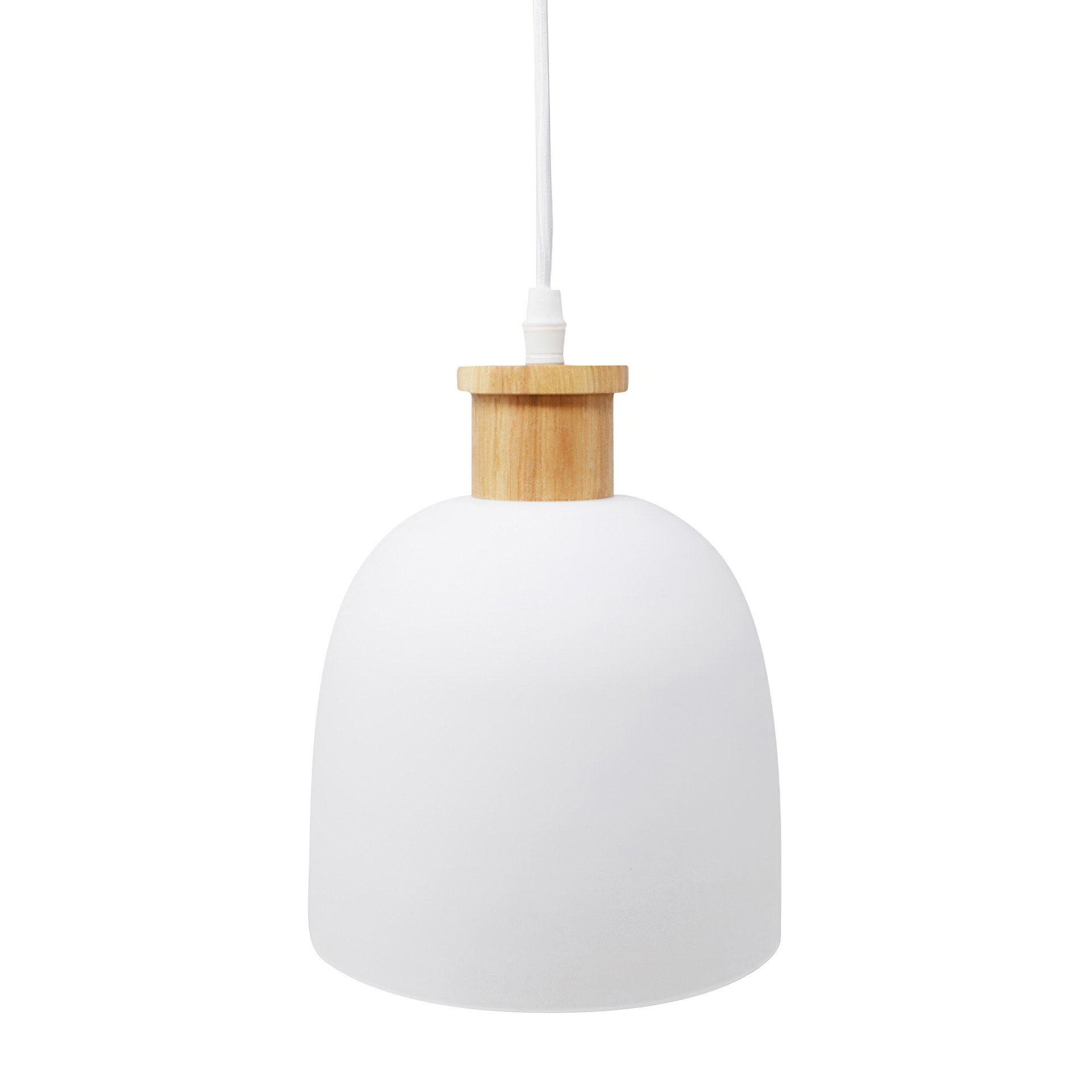 Cette suspension affiche un design minimaliste avec un abat-jour en céramique blanche lisse, complété par un connecteur en bois naturel qui ajoute une touche de chaleur.