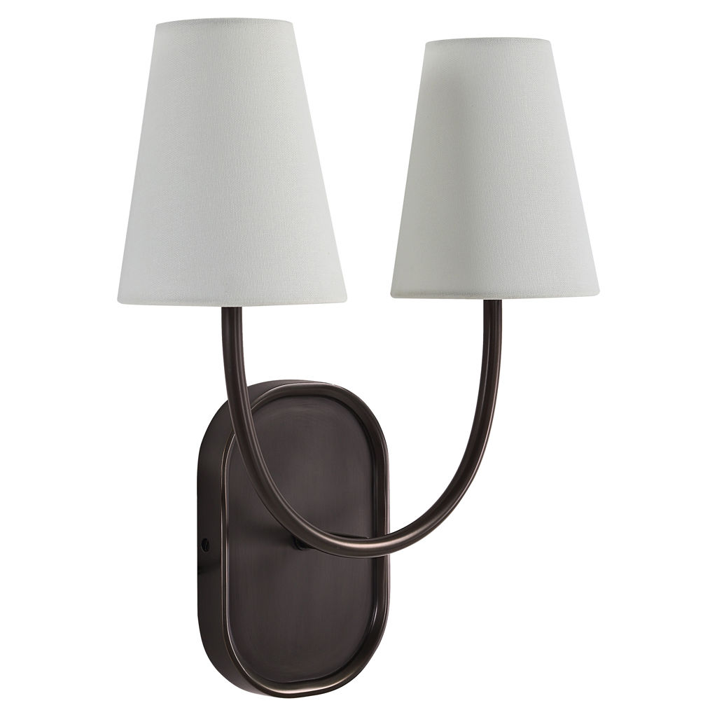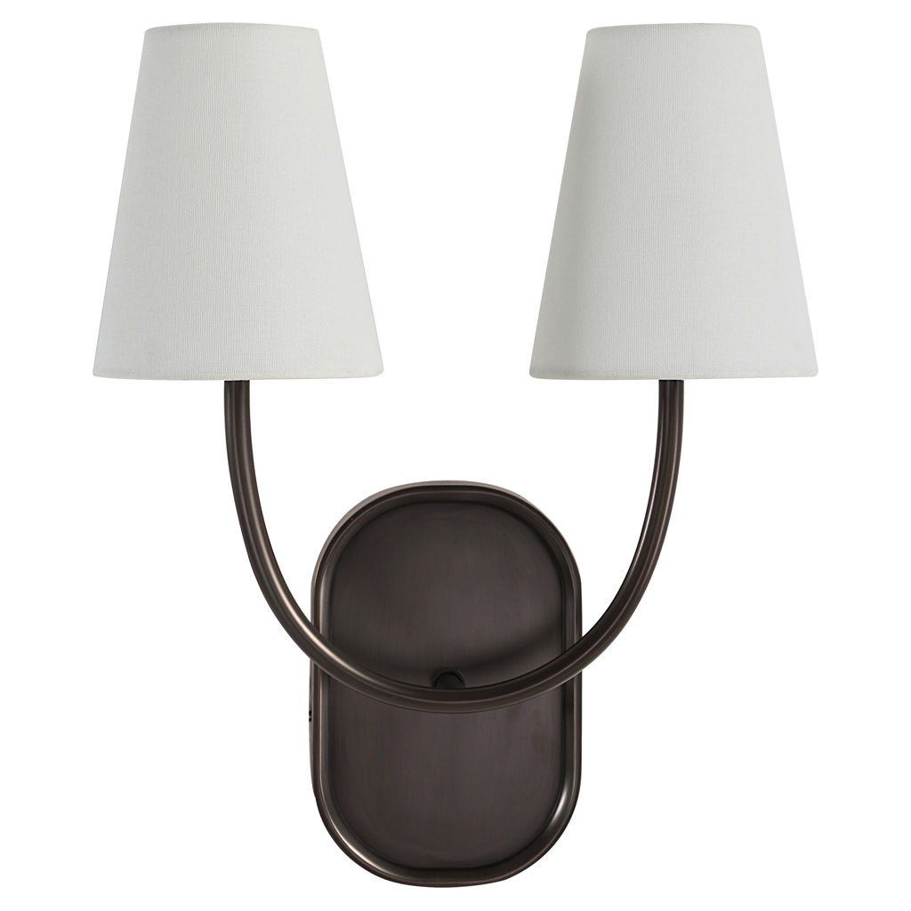 Son esthétique transitionnelle, son corps brun foncé et ses abat-jour effilés en lin blanc cassé rendent ce luminaire à deux bras idéal pour éclairer n'importe quel espace avec une lueur chaleureuse et accueillante.