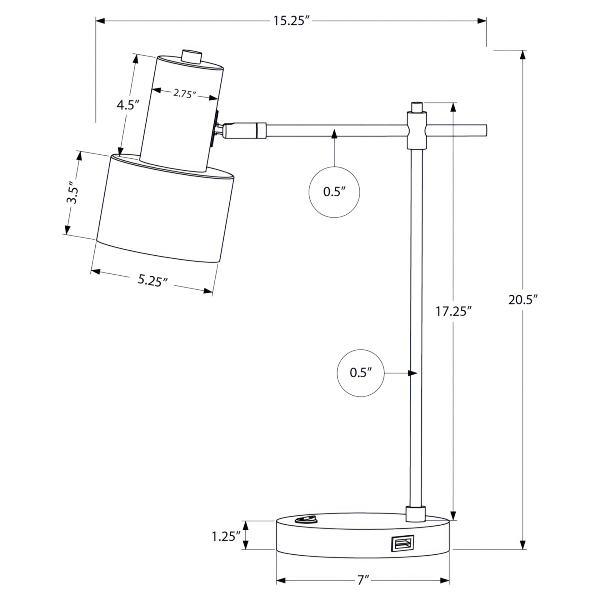 Cette lampe d'appoint au design moderne est équipée d'un port USB pour recharger votre appareil et d'un interrupteur à bascule facile d'accès intégré à la base pour éclairer instantanément un espace.