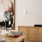 Petite par sa stature, mais grandiose par son style, cette lampe suspendue peut être suspendue seule ou entre plusieurs disposées les unes à la suite des autres.