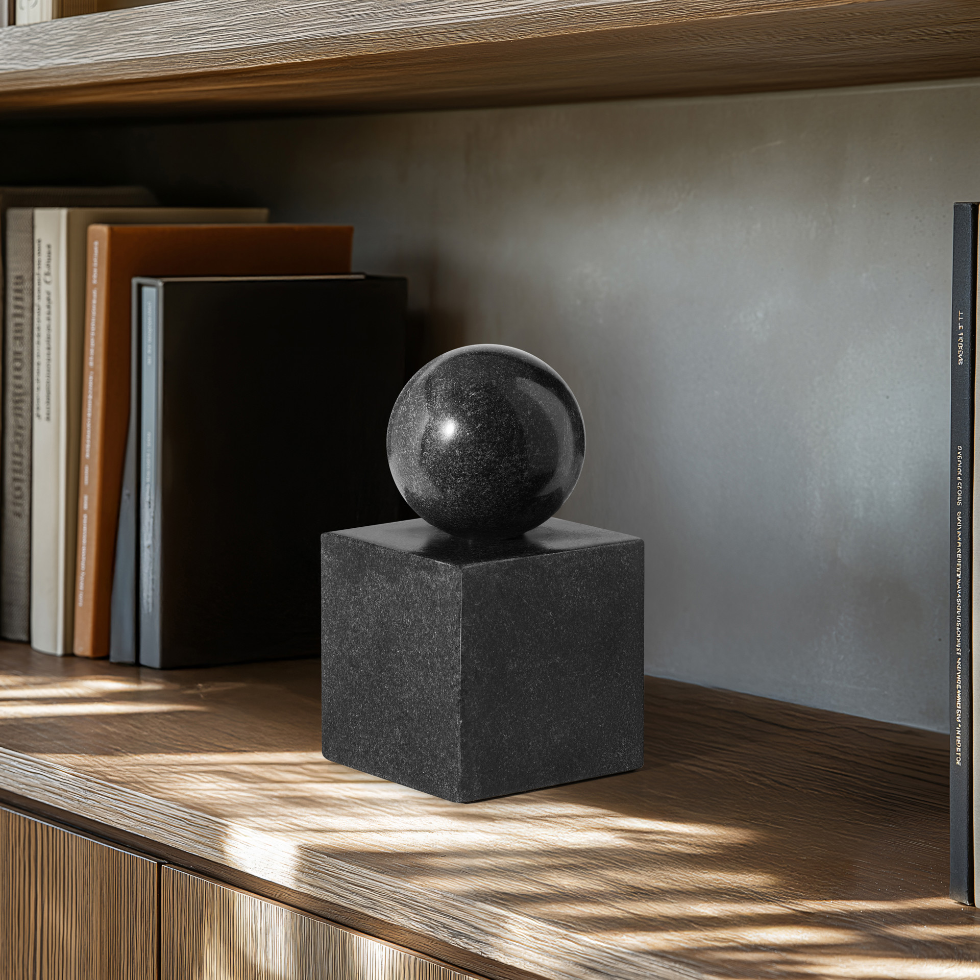 Ajoutez une élégance intemporelle à votre espace avec cette sculpture en marbre polyvalente. Dotée d'une boule de marbre ronde et lisse reposant sur un élégant pilier carré, elle sert à la fois de serre-livres fonctionnel et d'accent décoratif saisissant.