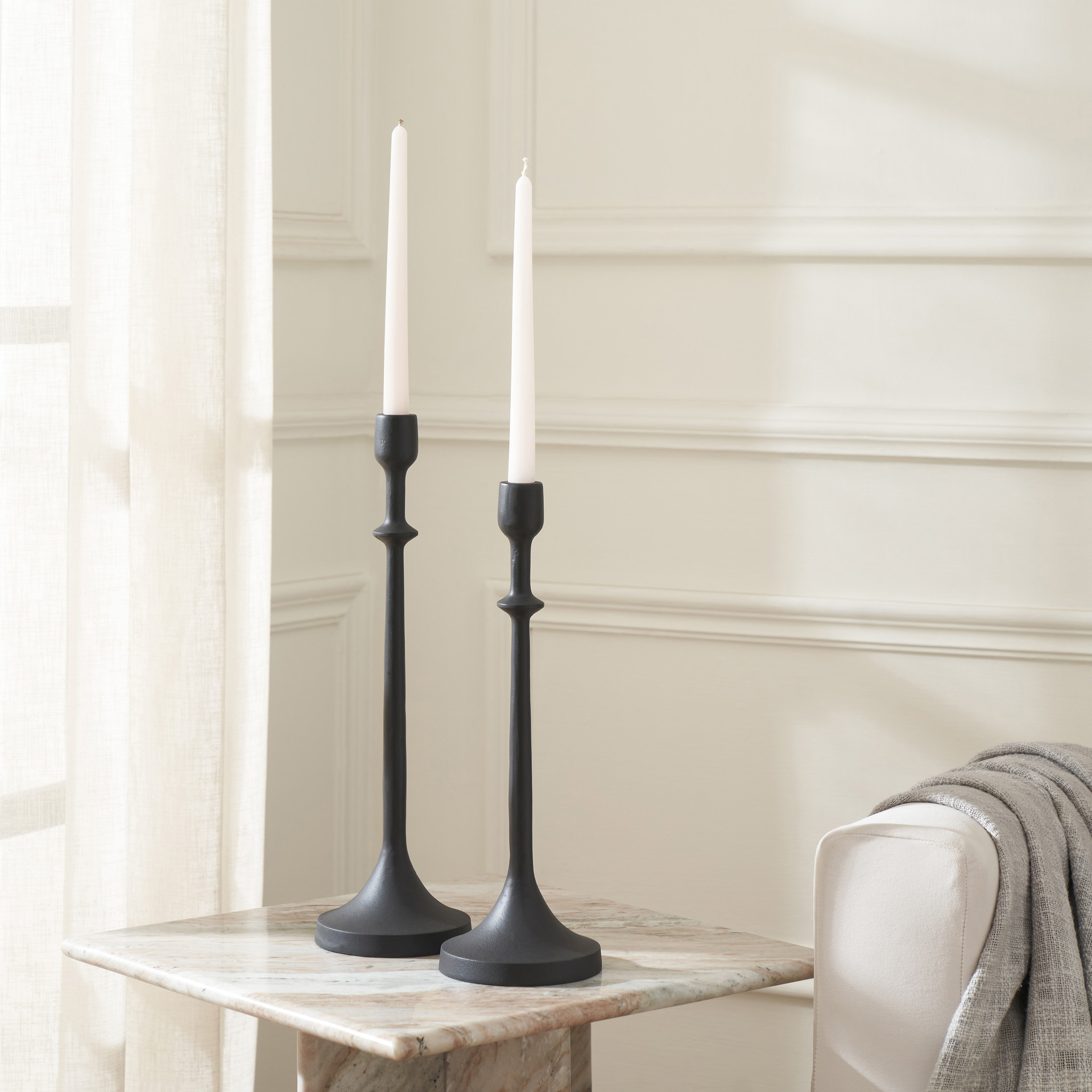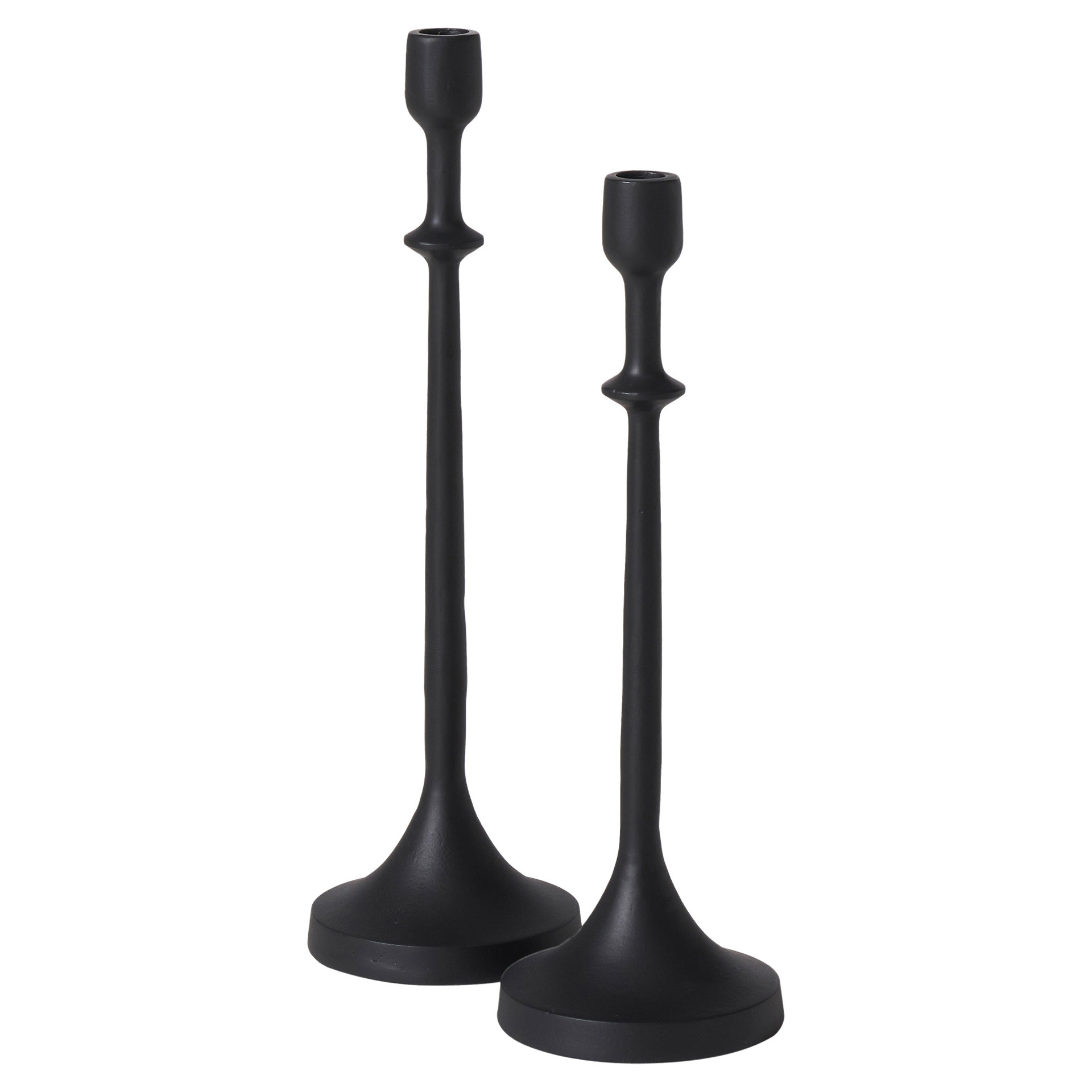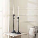 Conçu avec une finition peinte en noir mat pour un look en fer forgé, ce beau duo de chandeliers en aluminium aura un impact intemporel sur un manteau de cheminée, un buffet de salle à manger ou une table de cuisine.