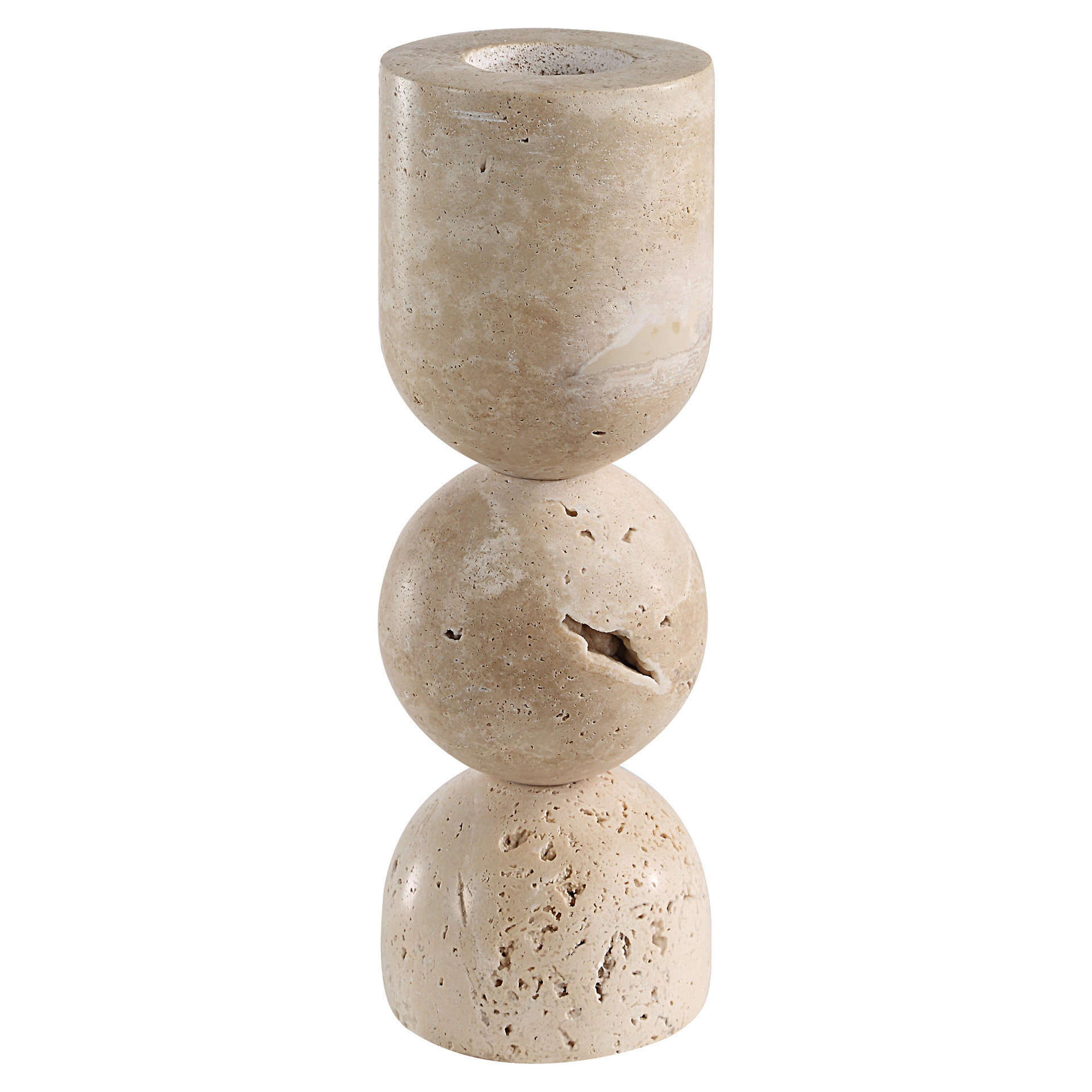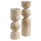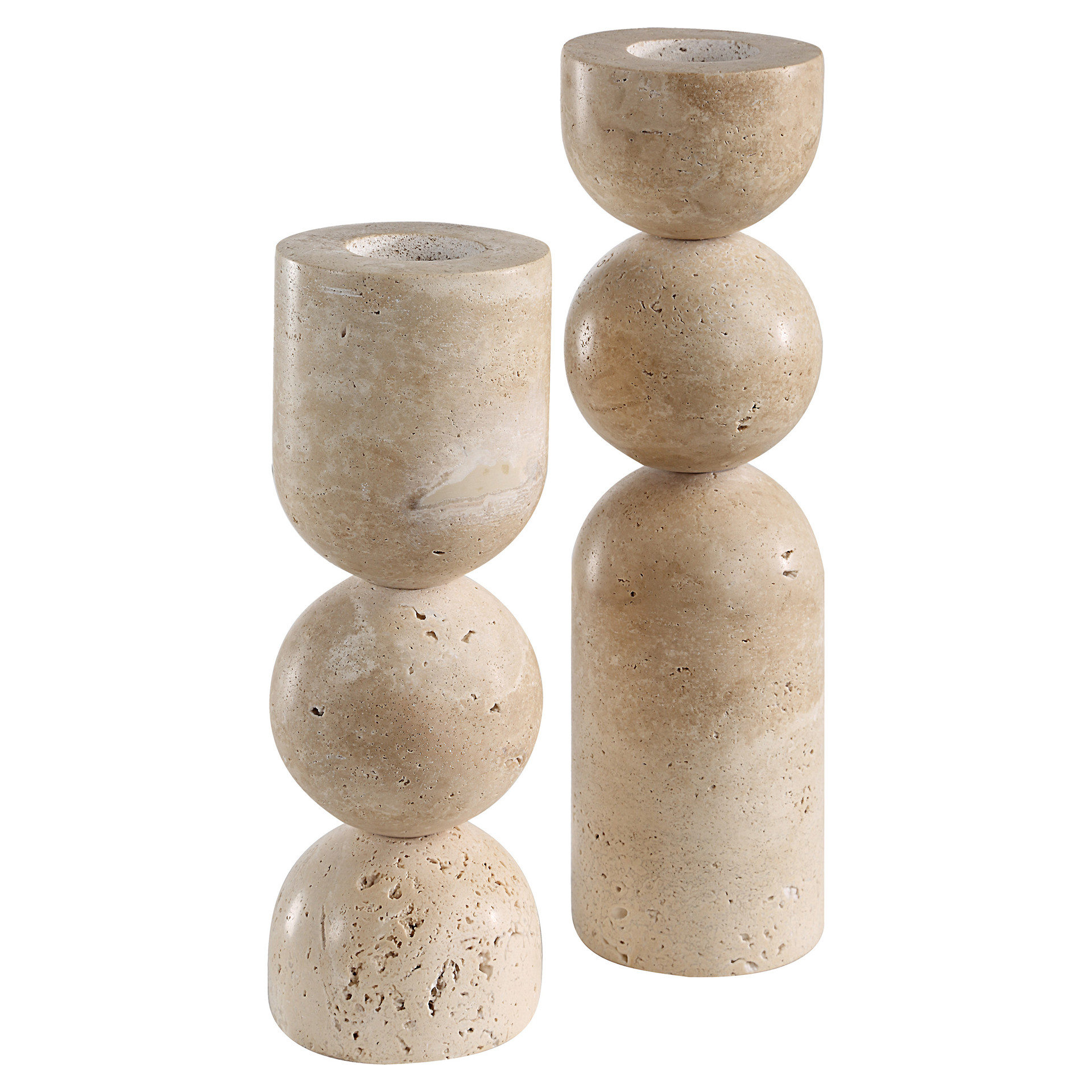 Ce set de deux chandeliers en travertin, qui s'intègre parfaitement dans les décors contemporains et transitionnels, apportera chaleur, texture et intérêt visuel à toute étagère ou table.