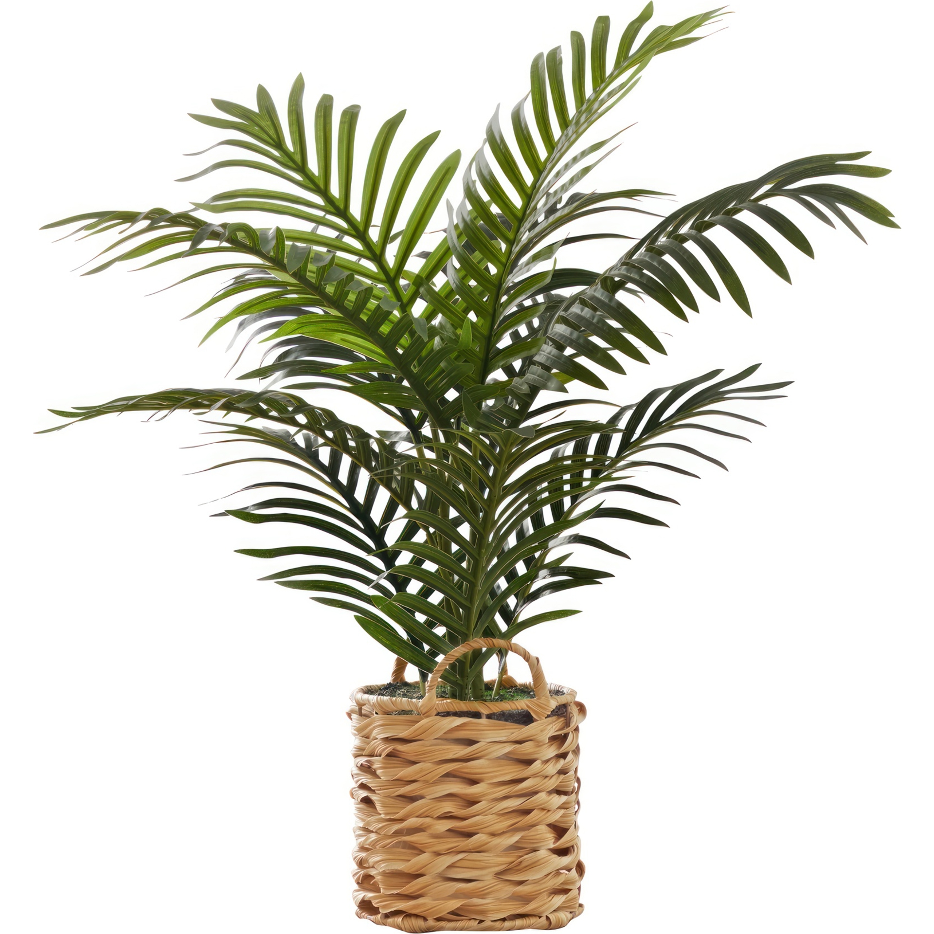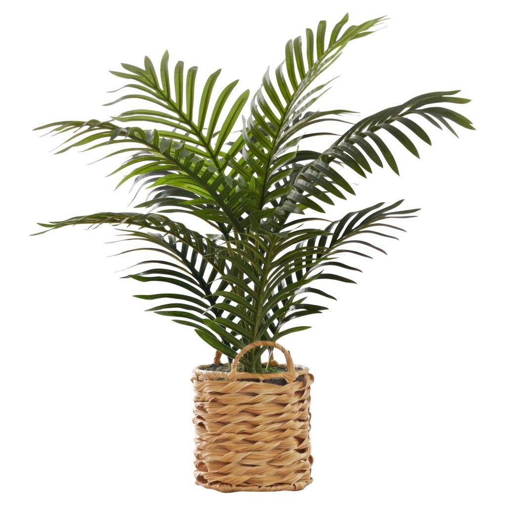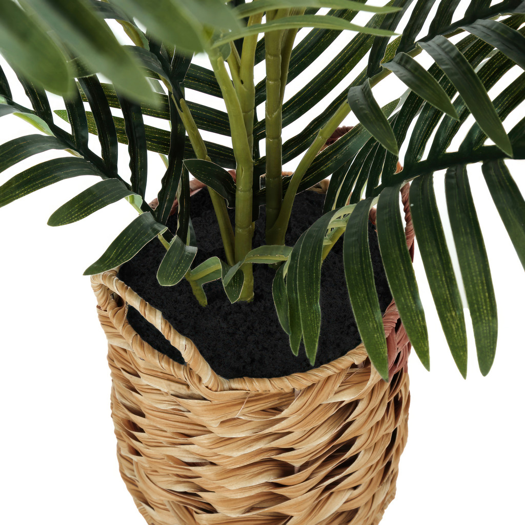 Ce faux palmier d'intérieur présente une esthétique authentique, placé dans un contenant en forme de panier tressé de 8 pouces d'aspect naturel, apportant une touche de verdure instantanée à une pièce.