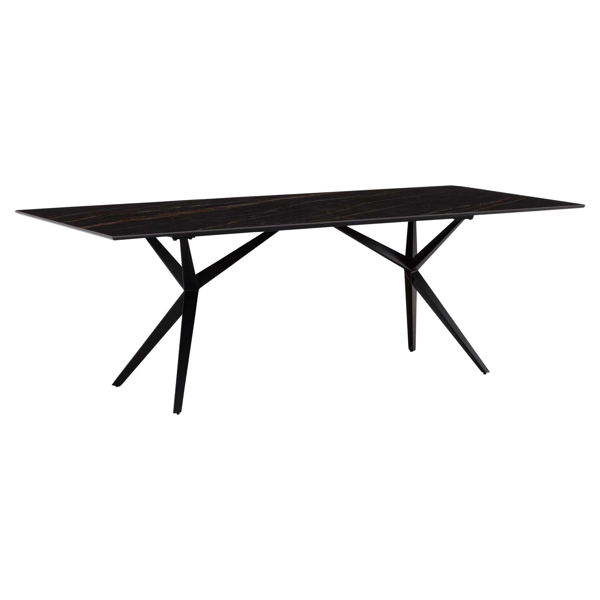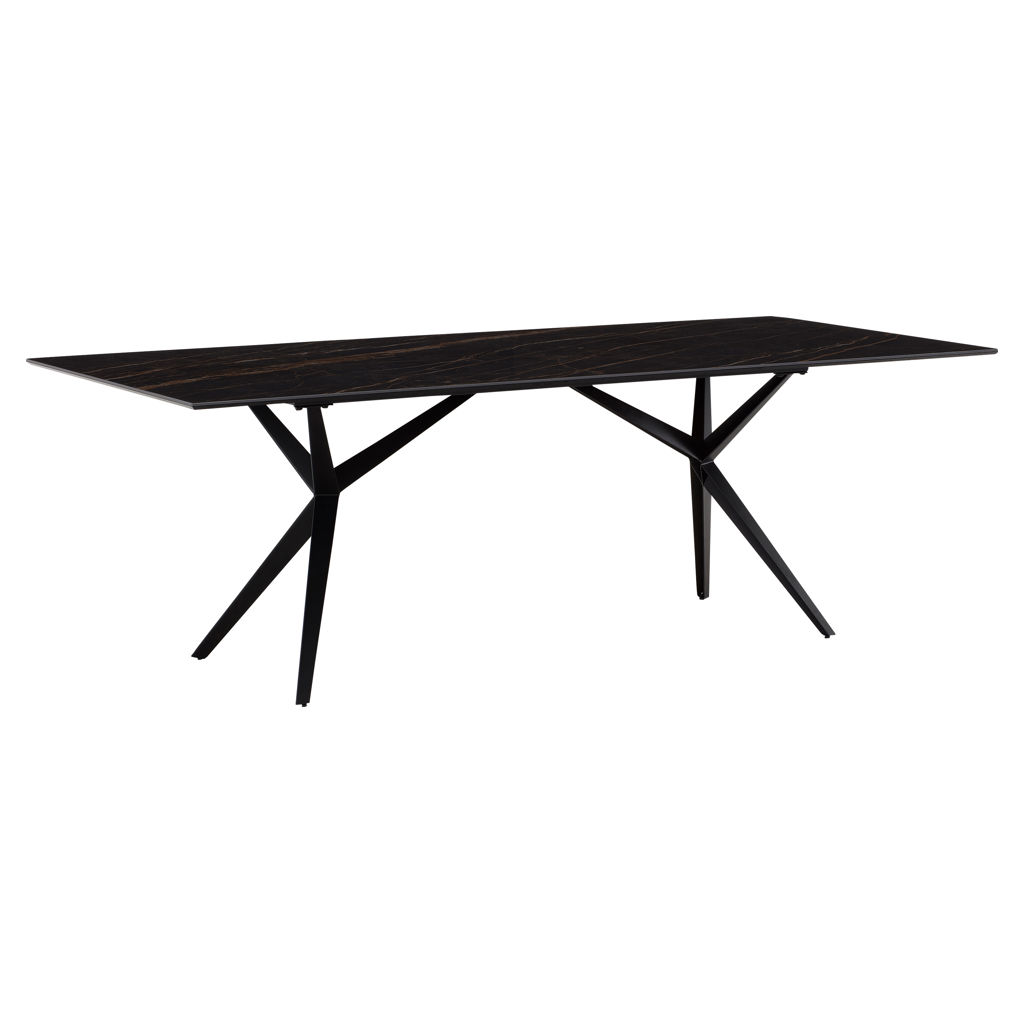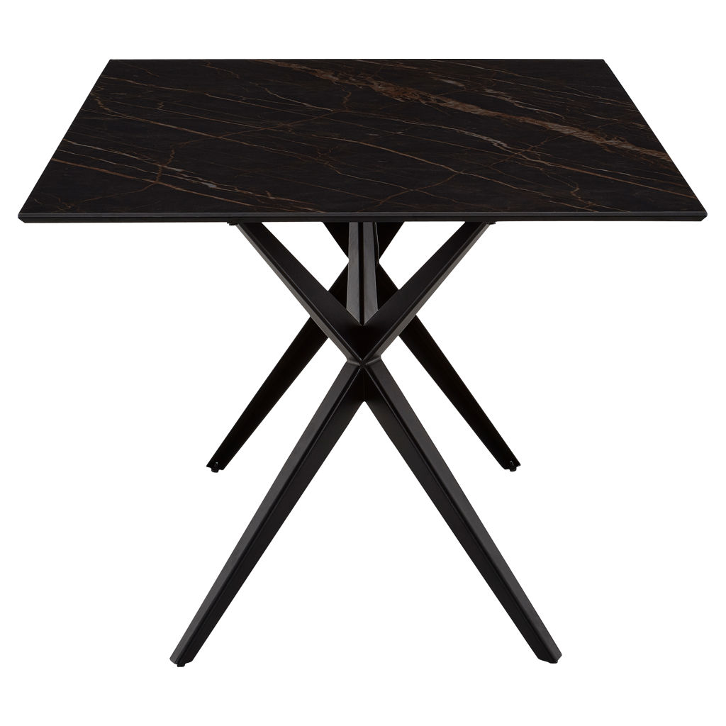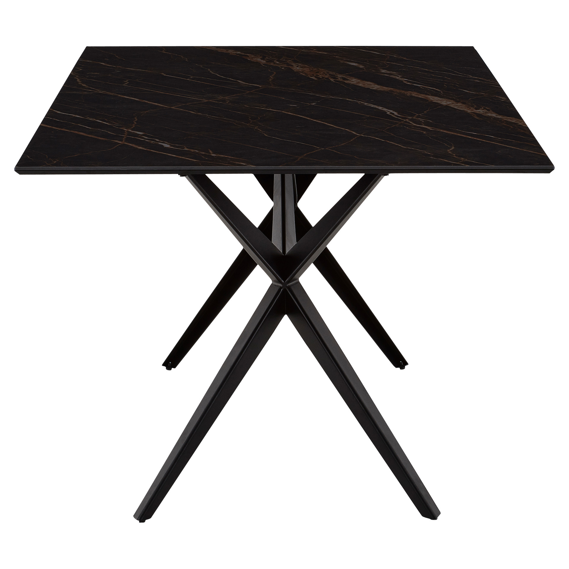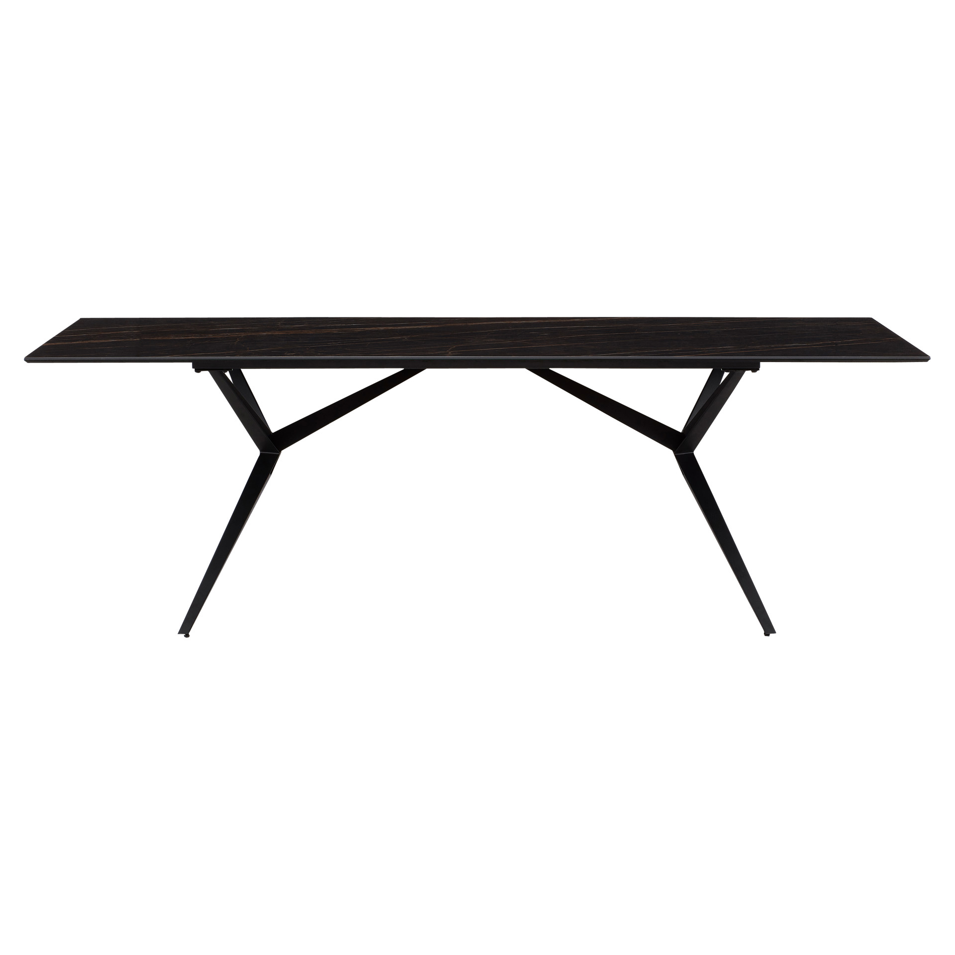 Cette table de salle à manger allie élégance intemporelle et praticité moderne. Sa surface en céramique reproduit fidèlement les veines naturelles du marbre noir, créant un effet visuel saisissant qui transformera votre espace repas en véritable lieu de prestige.