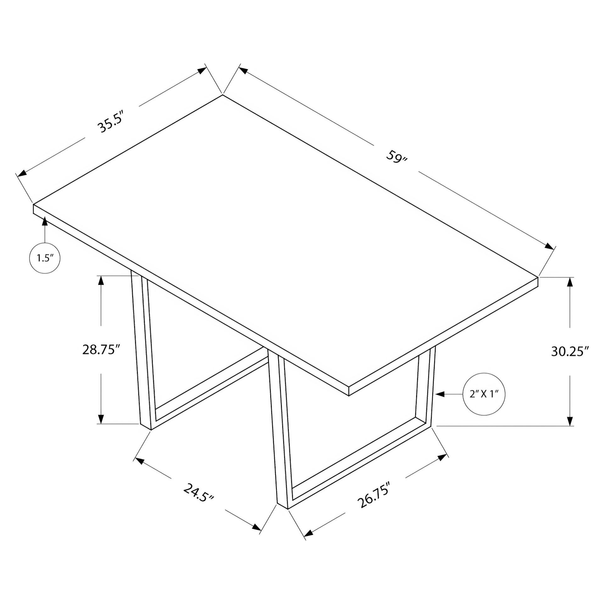 • Longueur de la table : 59 po