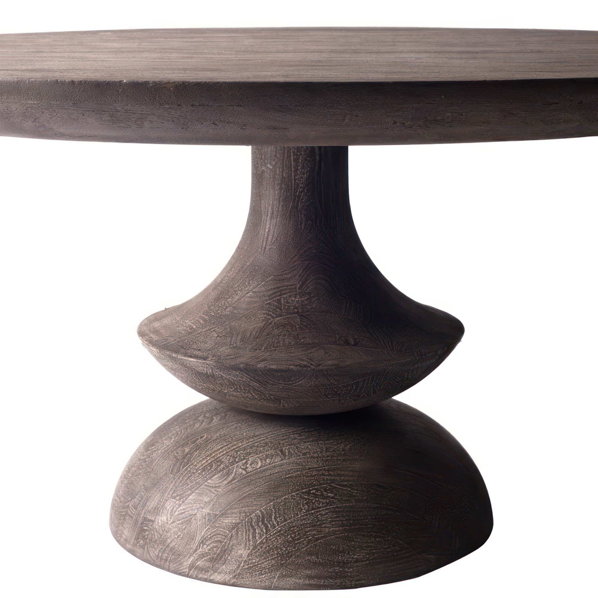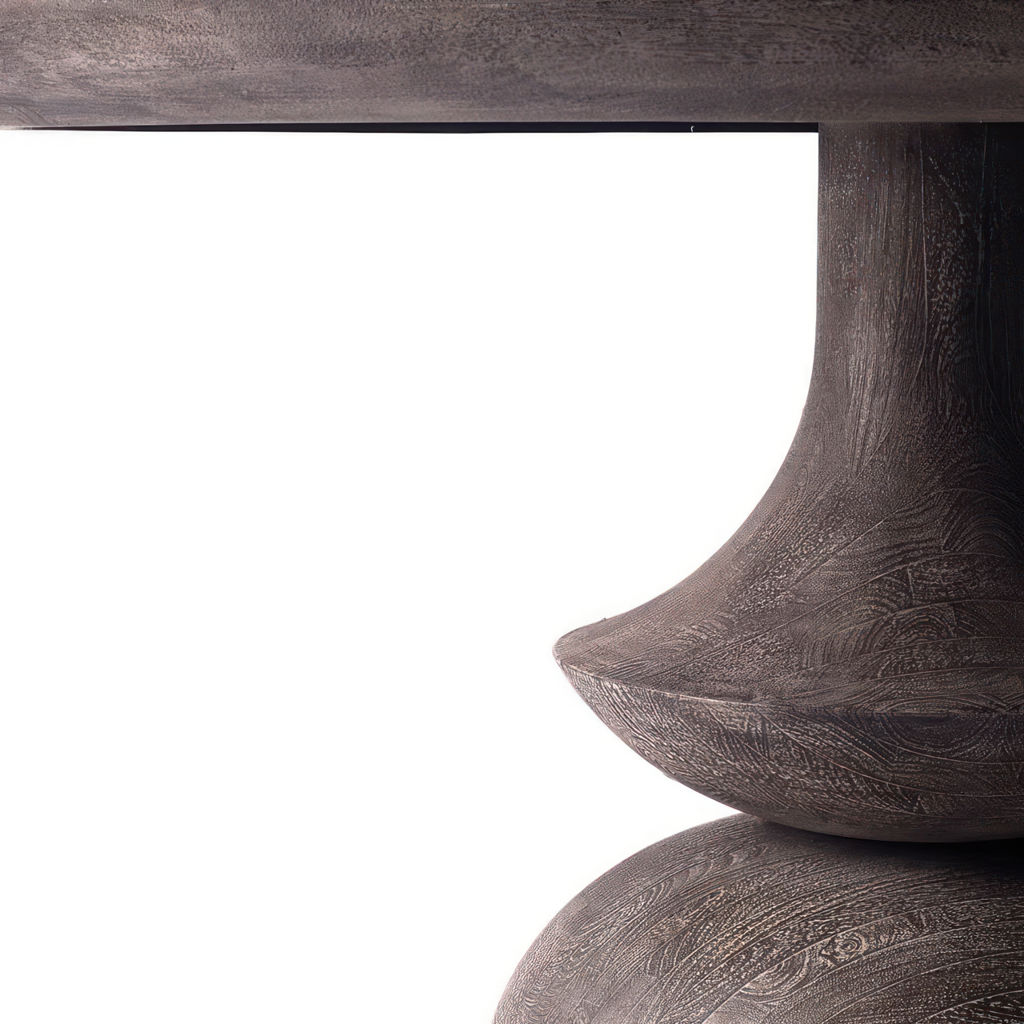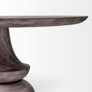 Il est poli dans un ton gris anthracite avec une texture en bois naturel.