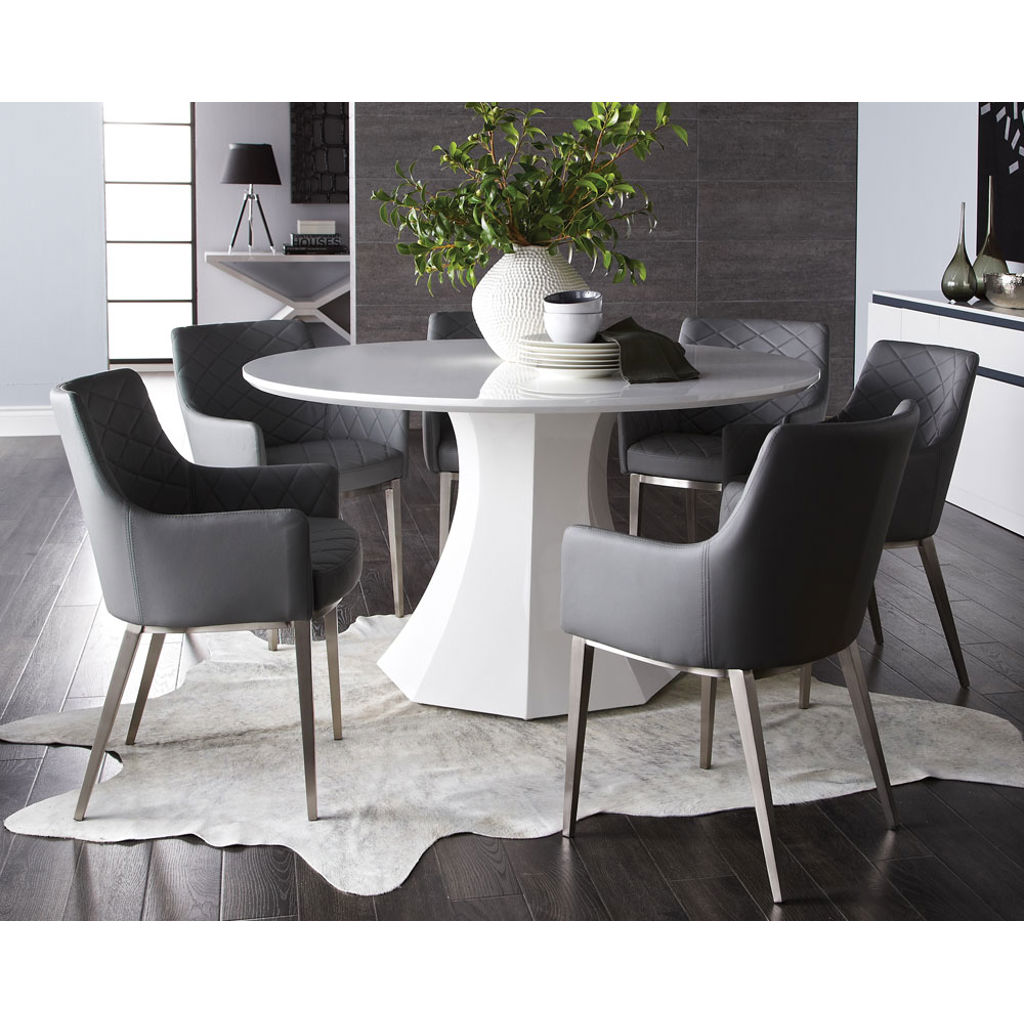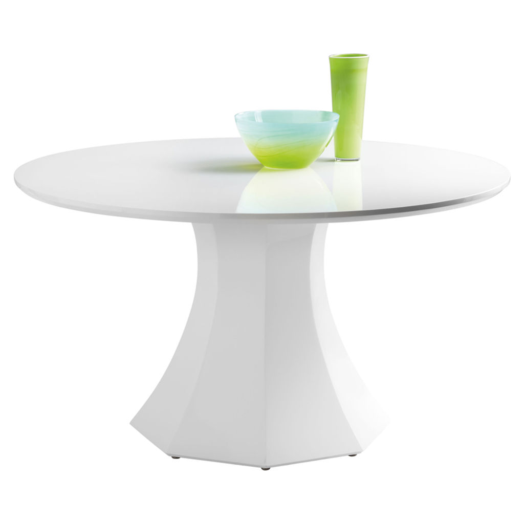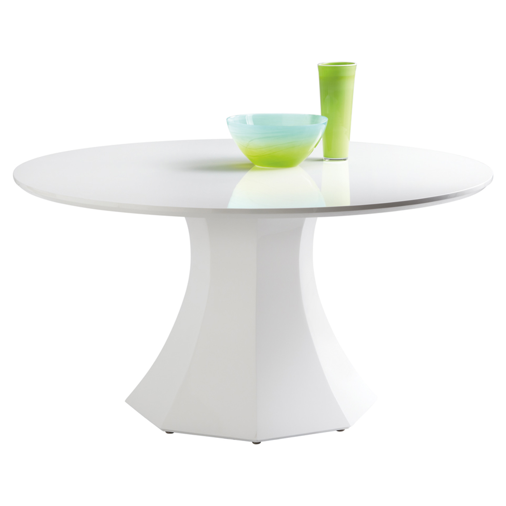 Un rare mélange d'élégance gracieuse et de design contemporain, cette superbe table à manger est finie dans un lustre pur blanc, est sûr d'impressionner. Le diamètre de 55" peut accueillir jusqu'à 6 personnes.