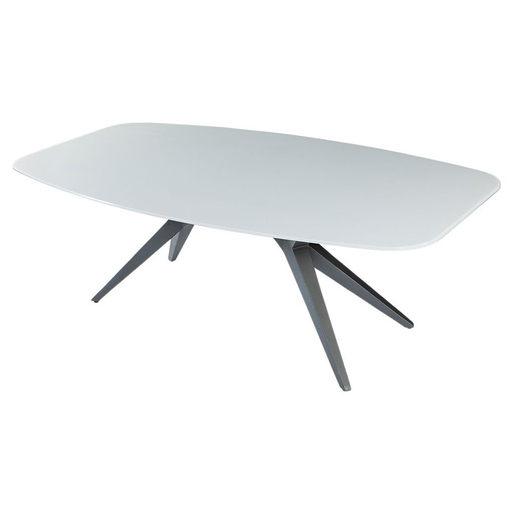 La structure métallique robuste assure une stabilité exemplaire, tandis que sa silhouette épurée s'intègre harmonieusement dans tous les intérieurs. Les lignes fluides du plateau créent une impression de légèreté qui agrandit visuellement votre espace.