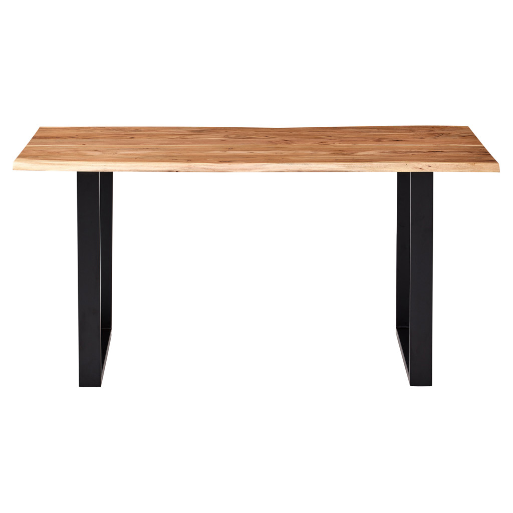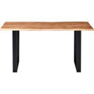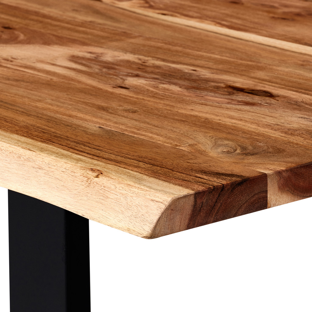 Cette table de salle à manger allie parfaitement fonctionnalité et élégance naturelle. Son plateau en bois massif révèle des veines uniques et authentiques qui font de chaque pièce un exemplaire distinctif. La robuste structure métallique noire offre un contraste saisissant tout en garantissant une stabilité exceptionnelle.