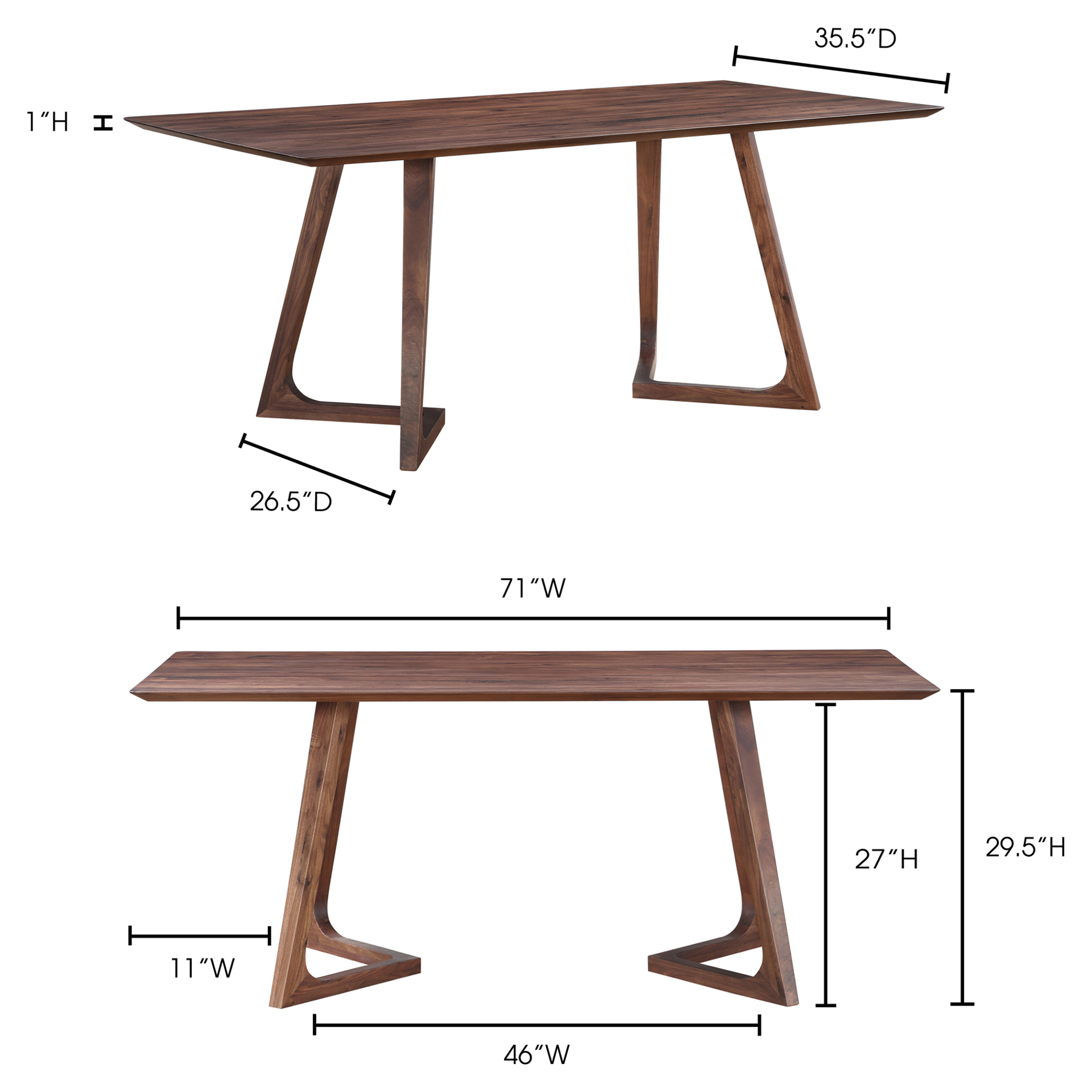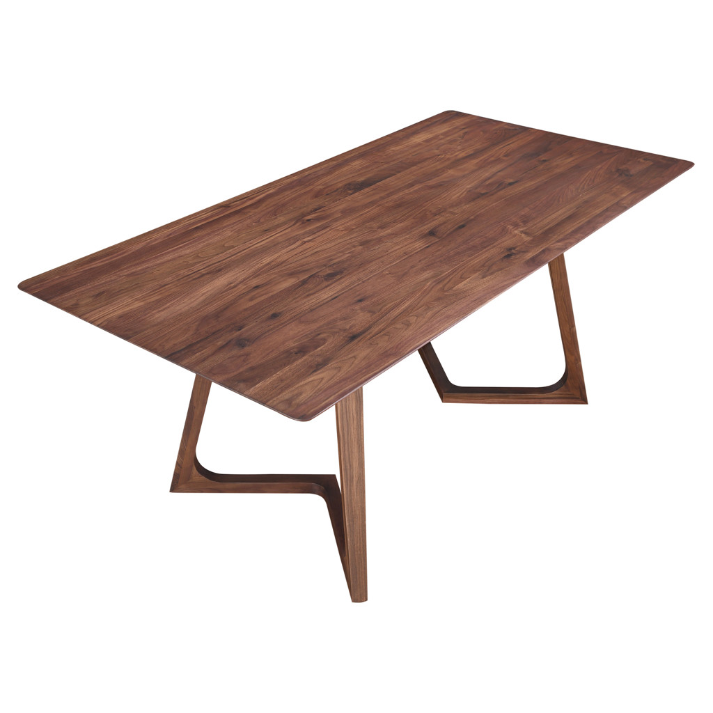 Fabriquée en noyer américain massif, la table de salle à manger Godenza au design moderne du milieu du siècle donne à votre salle à manger une sophistication subtile avec ses pieds de style contemporain.