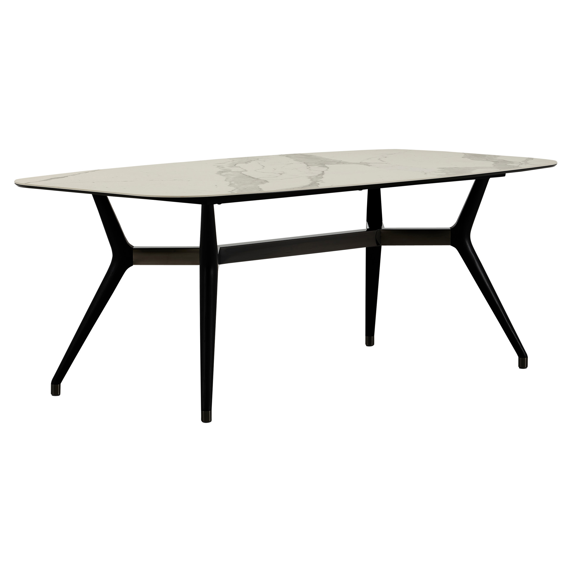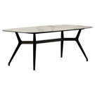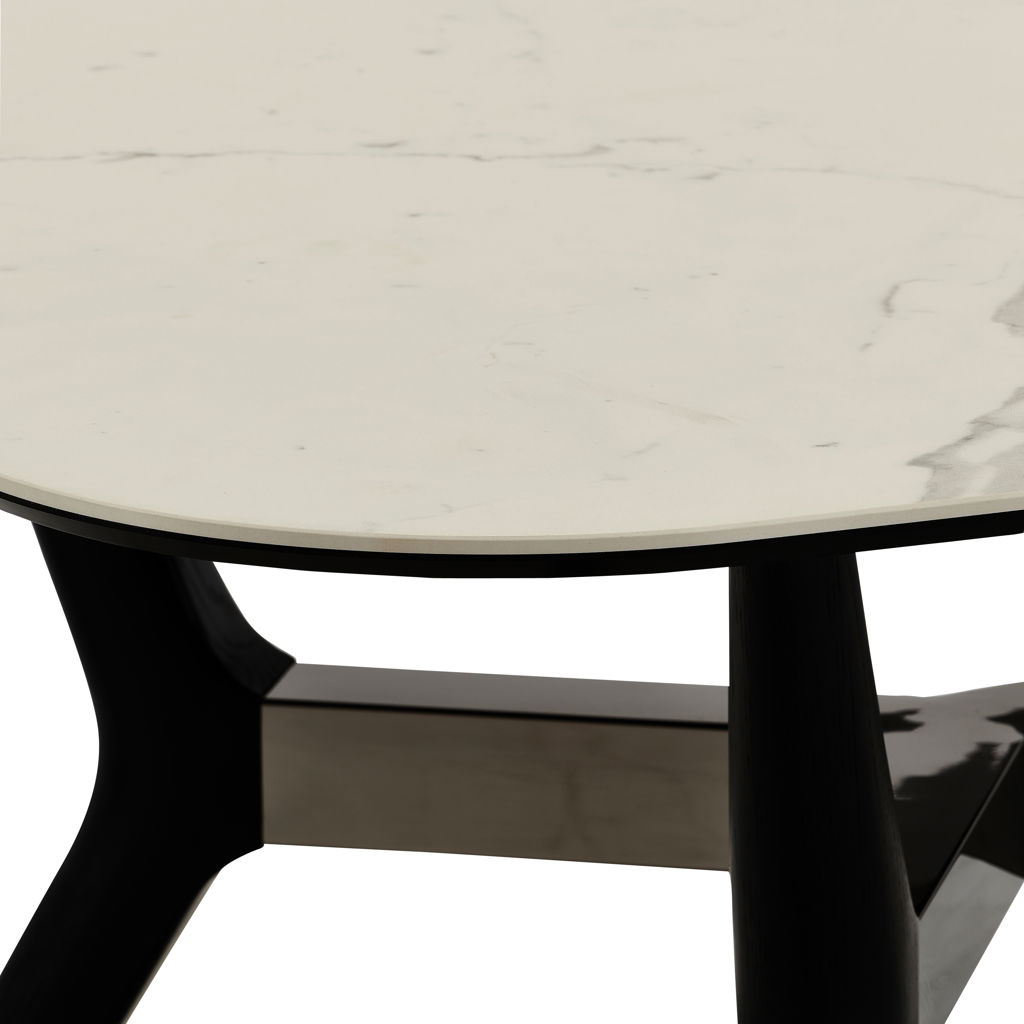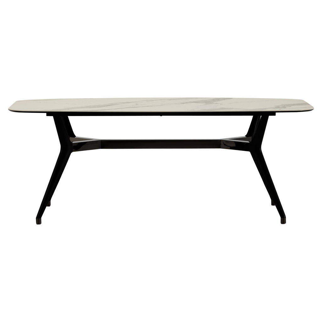 Le piètement en métal noir mat assure une stabilité exceptionnelle tout en créant un contraste saisissant avec la douceur du plateau. Cette table s'adapte facilement à tous les intérieurs grâce à ses lignes épurées et intemporelles.