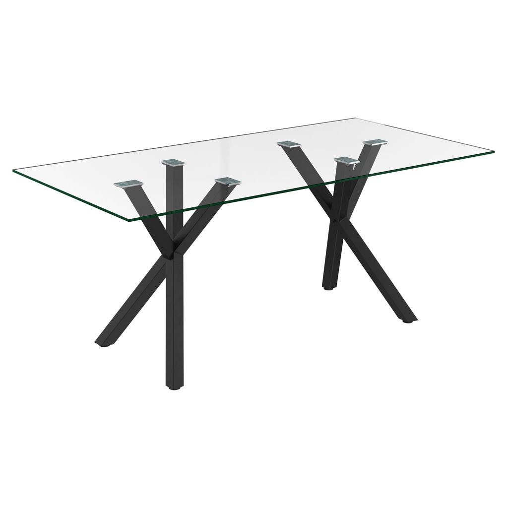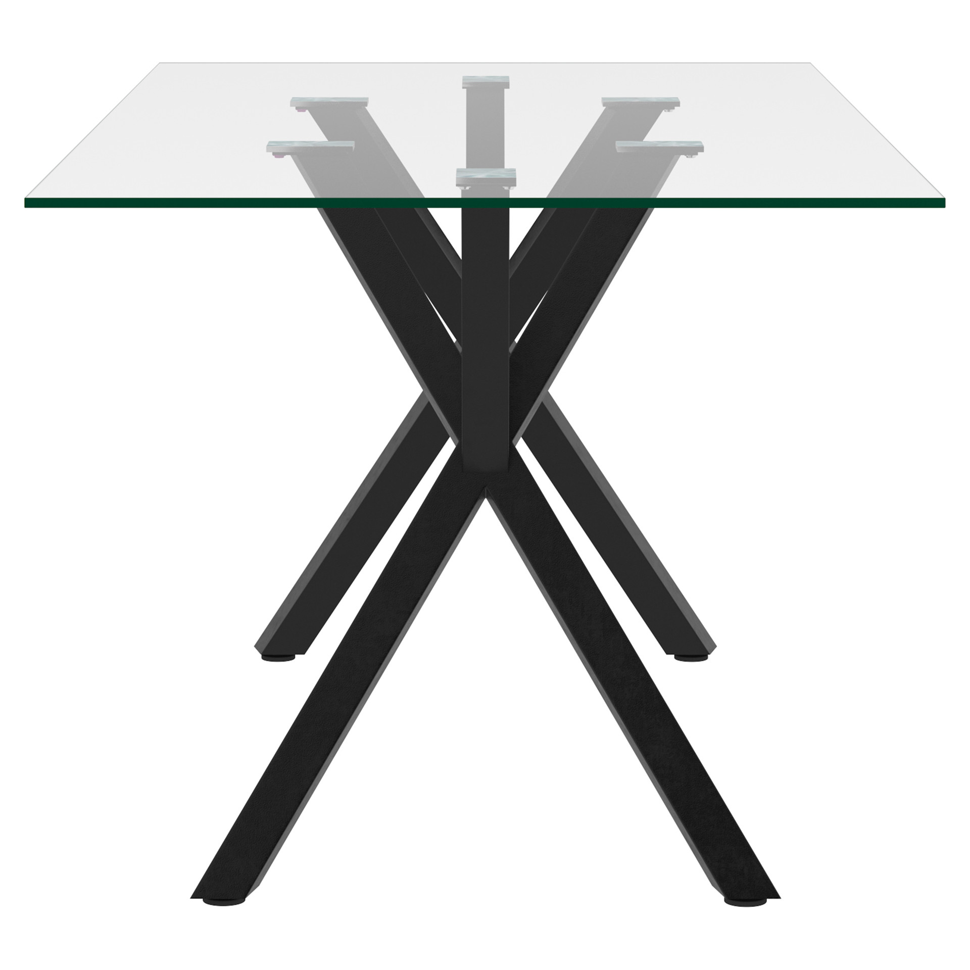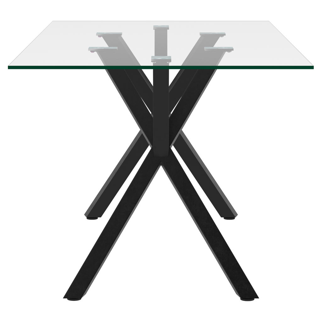 Les pieds en forme de X apportent une touche contemporaine distinctive qui s'intègre harmonieusement dans tous les intérieurs. Le verre facilite l'entretien quotidien et résiste aux taches, vous garantissant des années d'utilisation sans souci.