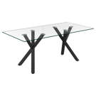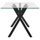 Cette table de salle à manger allie parfaitement fonctionnalité et raffinement. Son plateau en verre transparent crée une sensation d'espace et de luminosité dans votre pièce, tandis que sa structure métallique noire offre une stabilité remarquable.
