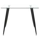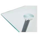 Cette élégante table de salle à manger transformera instantanément votre espace repas. Son plateau en verre transparent crée une sensation d'ouverture et de luminosité, parfait pour agrandir visuellement votre pièce. La structure métallique noire aux lignes épurées apporte une touche de modernité et assure une stabilité remarquable.