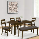 Le placage en noyer brun lisse, le plateau facile à nettoyer et les pieds en bois massif lui donnent une finition classique, tandis que le style transitionnel et le panneau d'extension de 18 pouces garantissent la polyvalence pour accueillir plusieurs personnes.