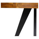 Le plateau en parquet de la table est complété par d’élégants pieds peints en noir, la base robuste en métal industriel offrant un contraste saisissant.