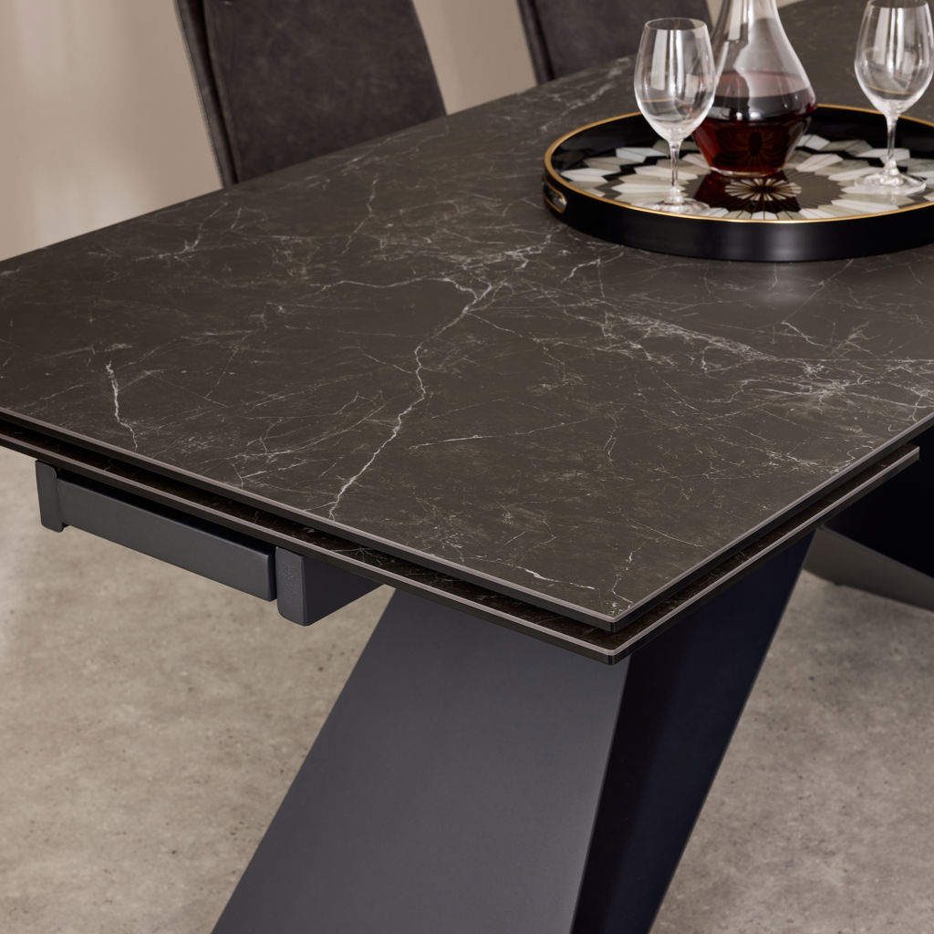 En somme, la table W allie la beauté du marbre à la durabilité de la céramique, pour un espace repas à la fois pratique et élégant.