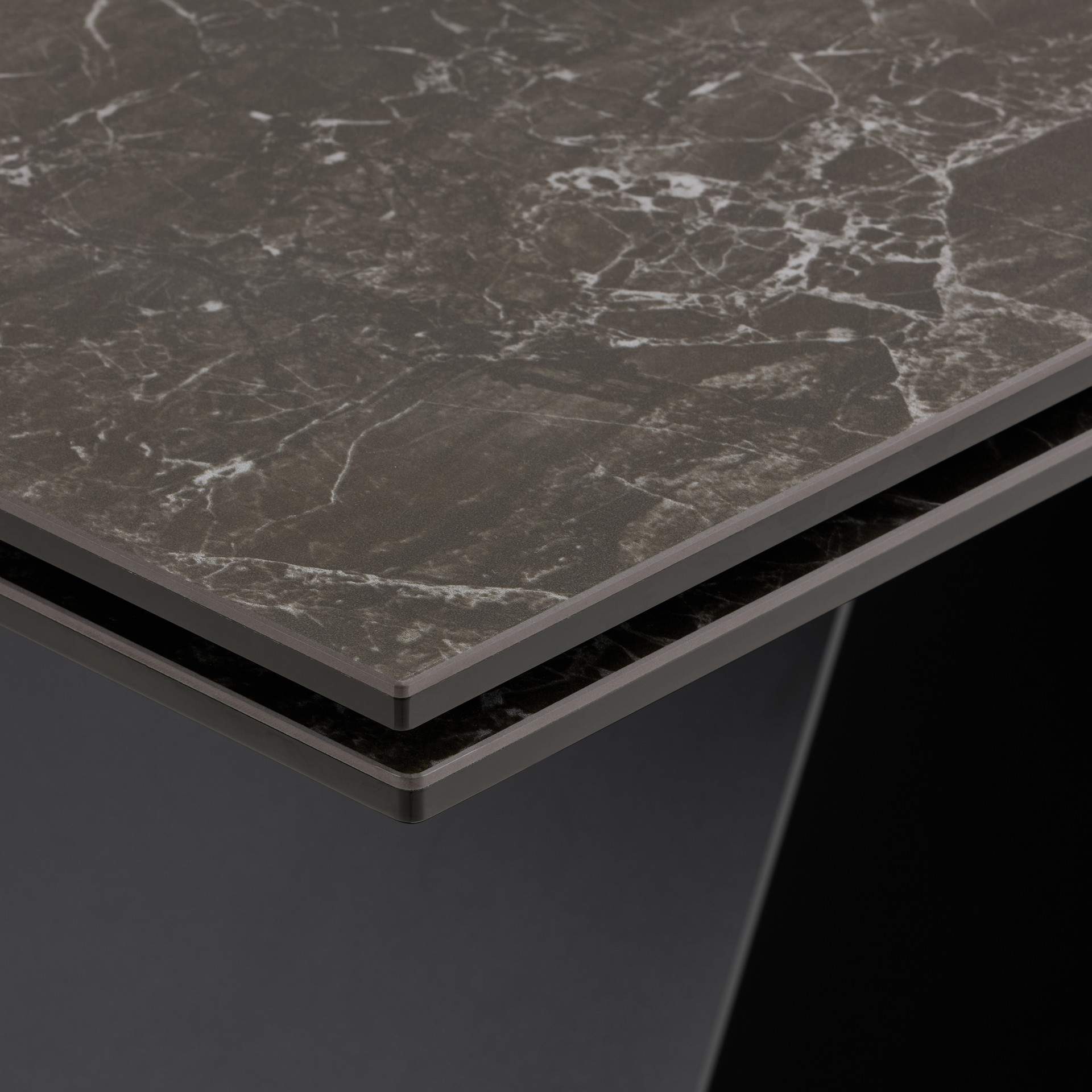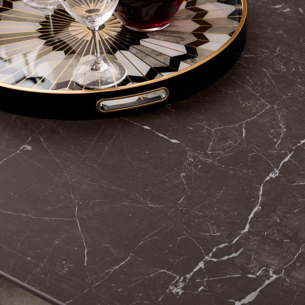 • Plateau en céramique italienne laminée sur verre, effet marbre noir