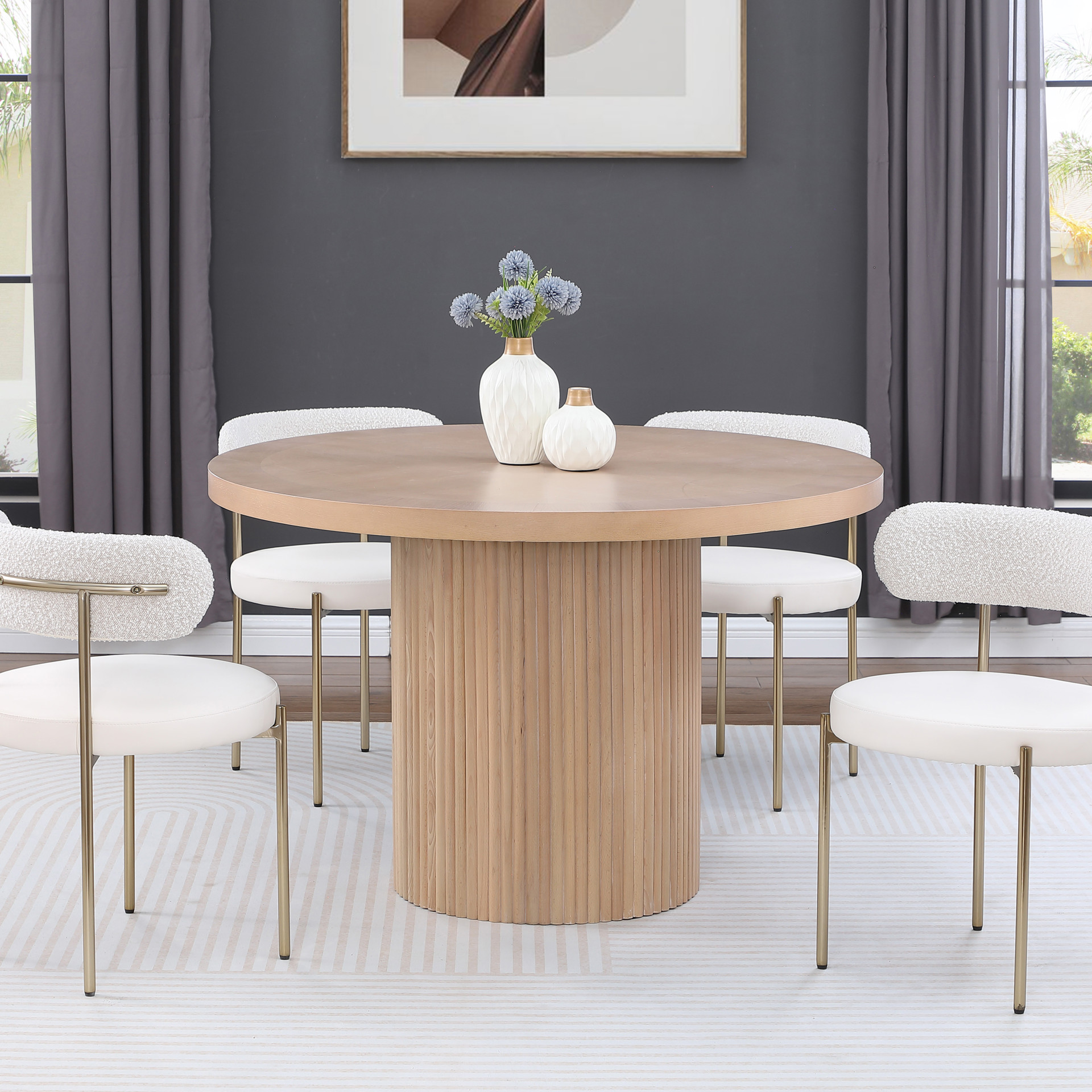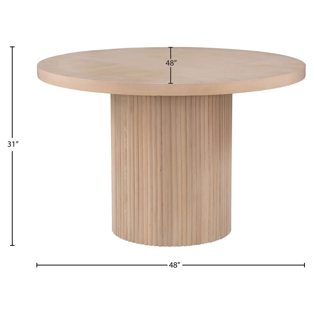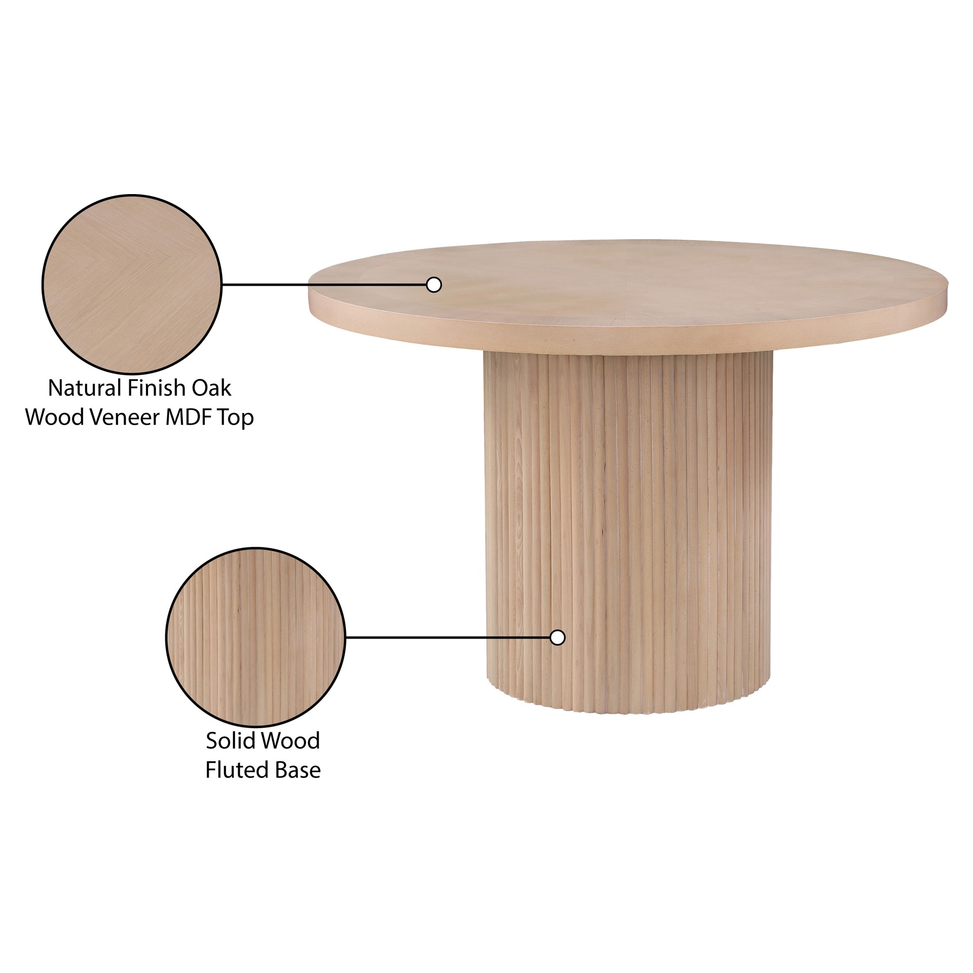 Le dessus rond repose sur la base cannelée, offrant beaucoup d'espace pour que la famille et les amis puissent se sentir à l'aise pendant qu'ils mangent leur repas.