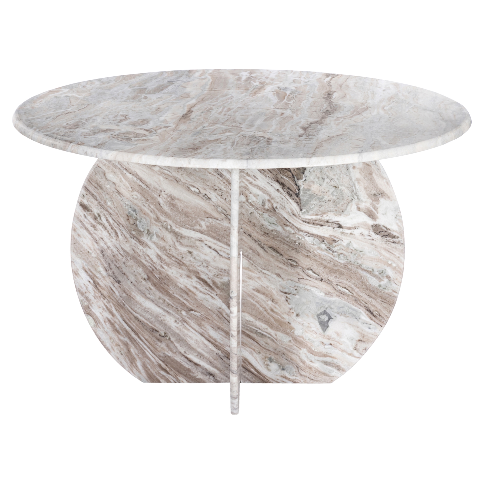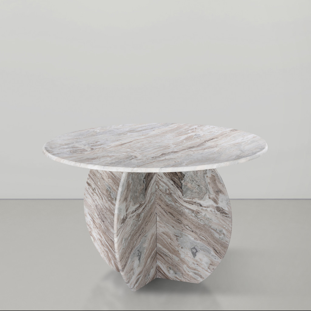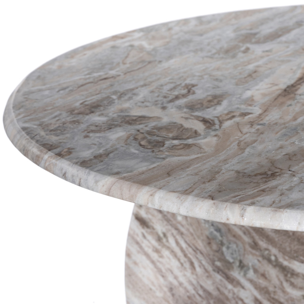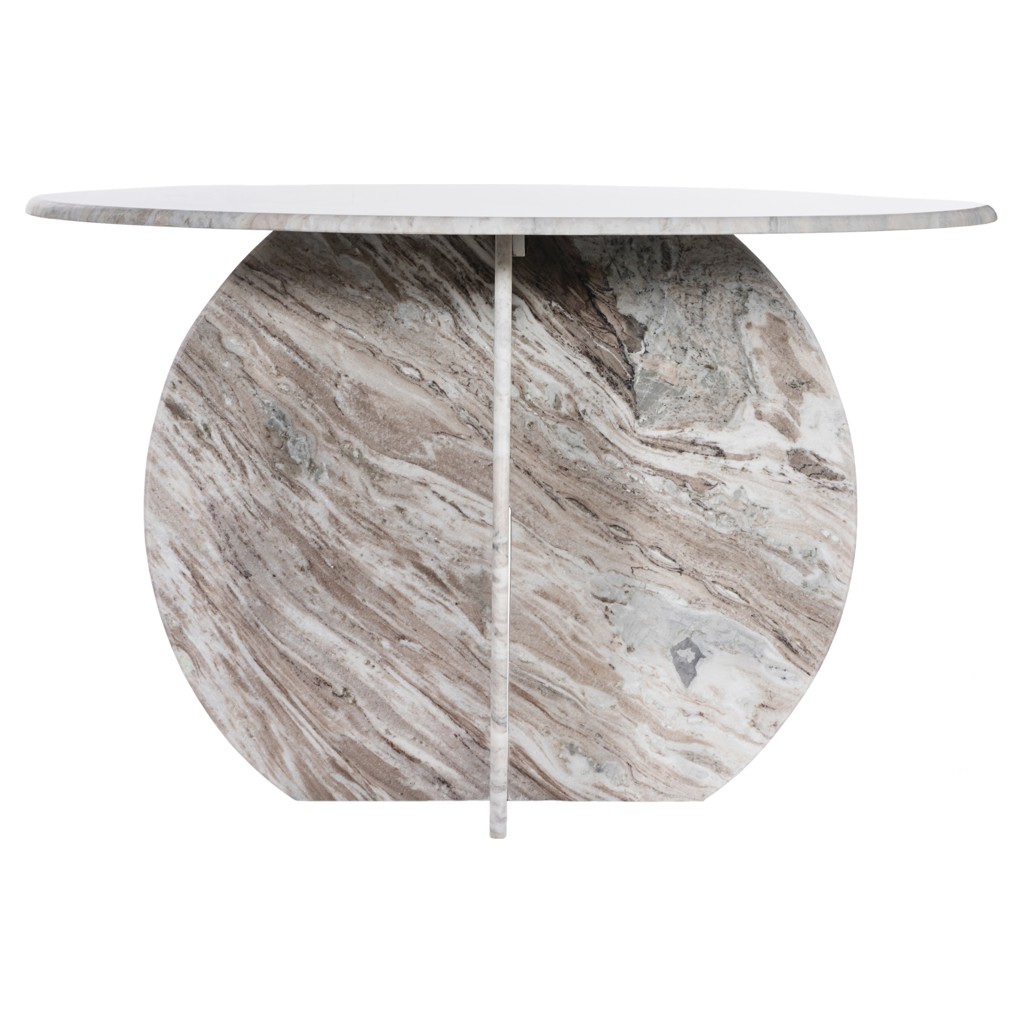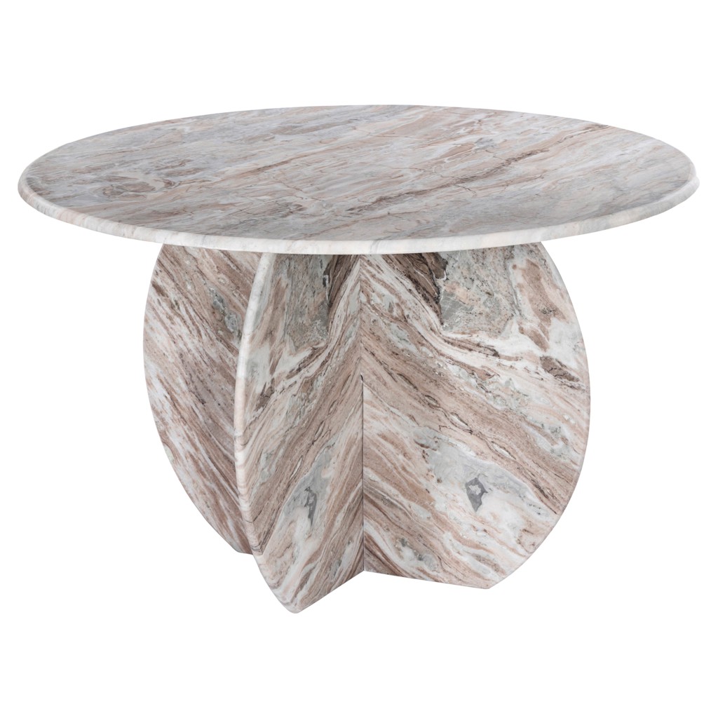 Cette table respire la sophistication depuis son marbre brun avec des veines clair jusqu'à sa base de forme unique.