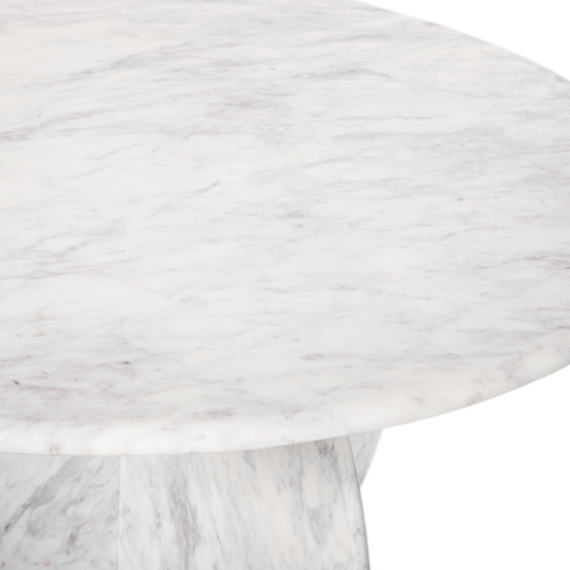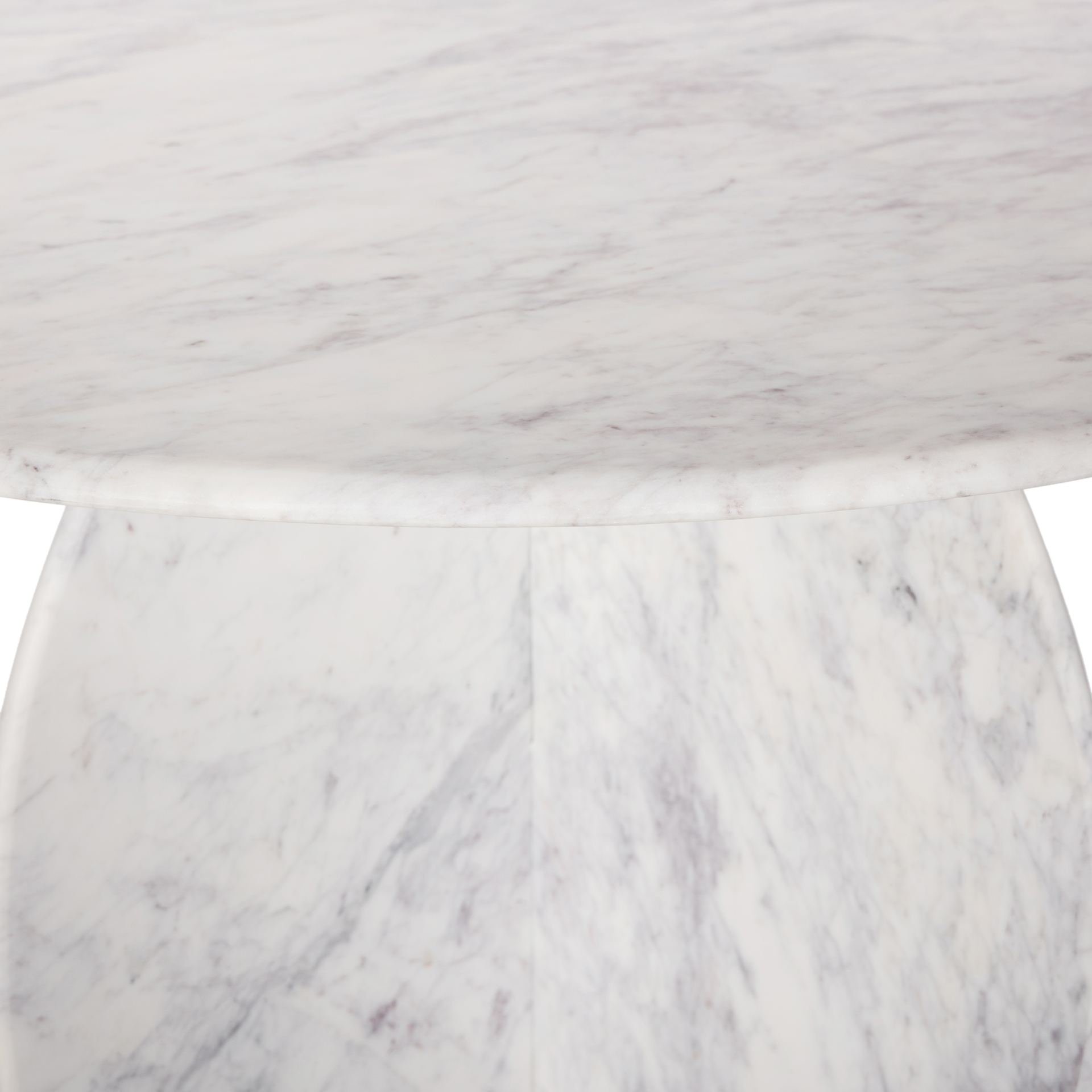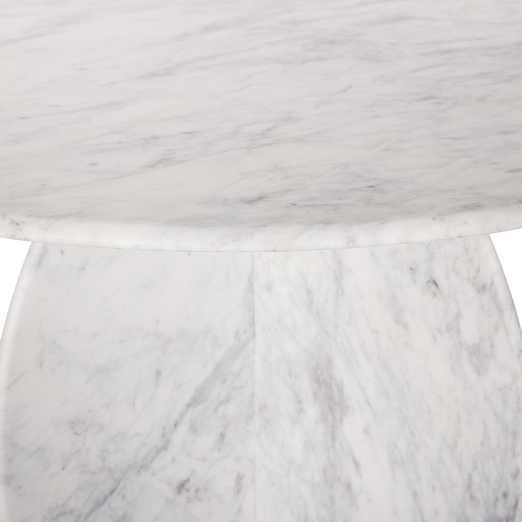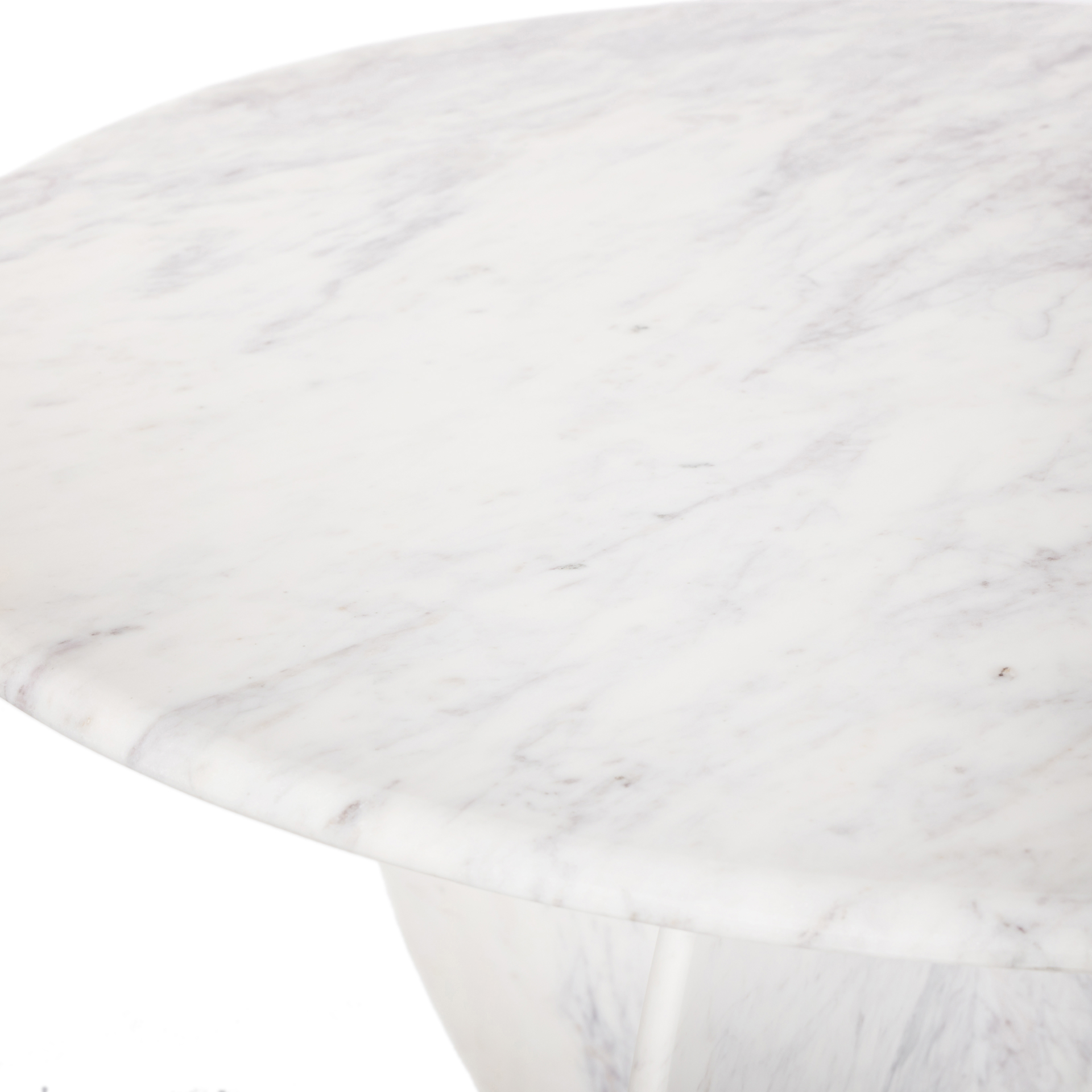 Cette table respire la sophistication depuis son marbre blanc avec des veines gris clair jusqu'à sa base de forme unique.