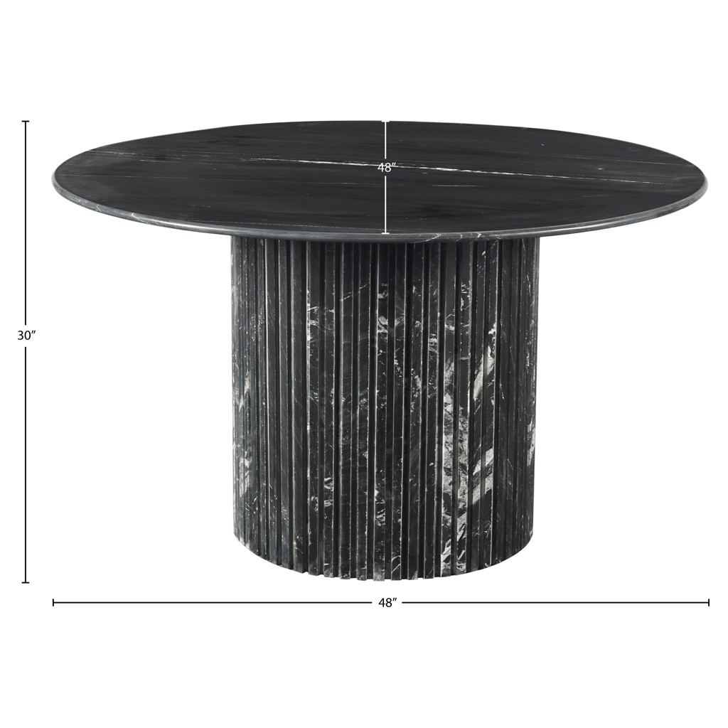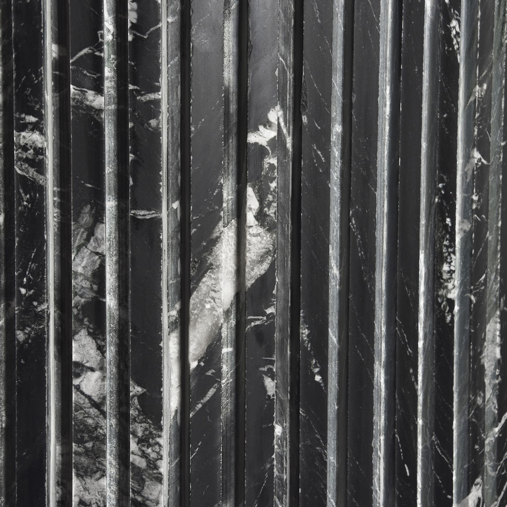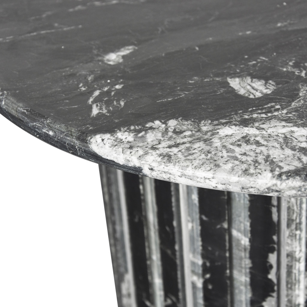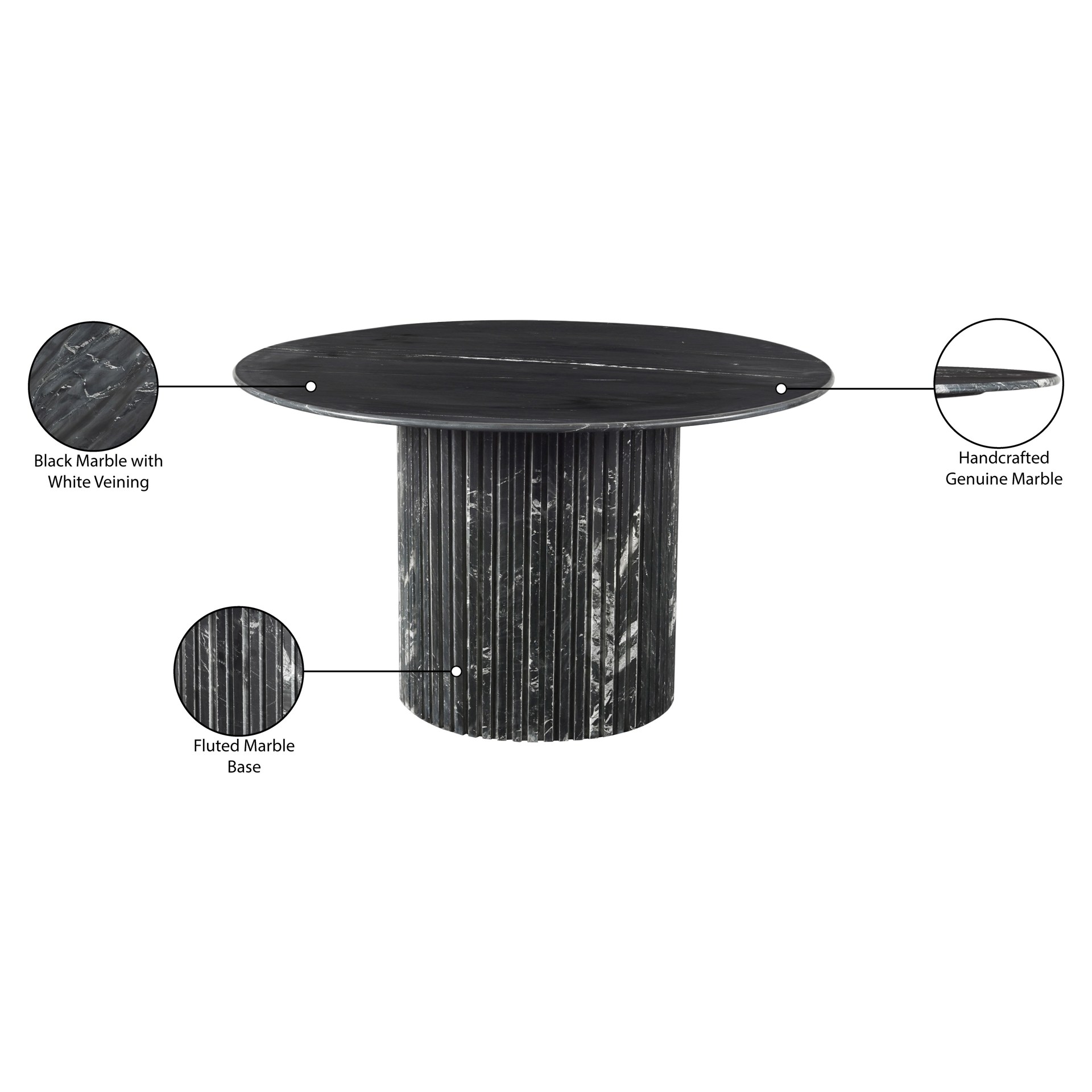 Fabriquée à partir de marbre véritable, chaque table est une oeuvre d'art unique, dotée d'un plateau en marbre noir aux veines blanches complexes.