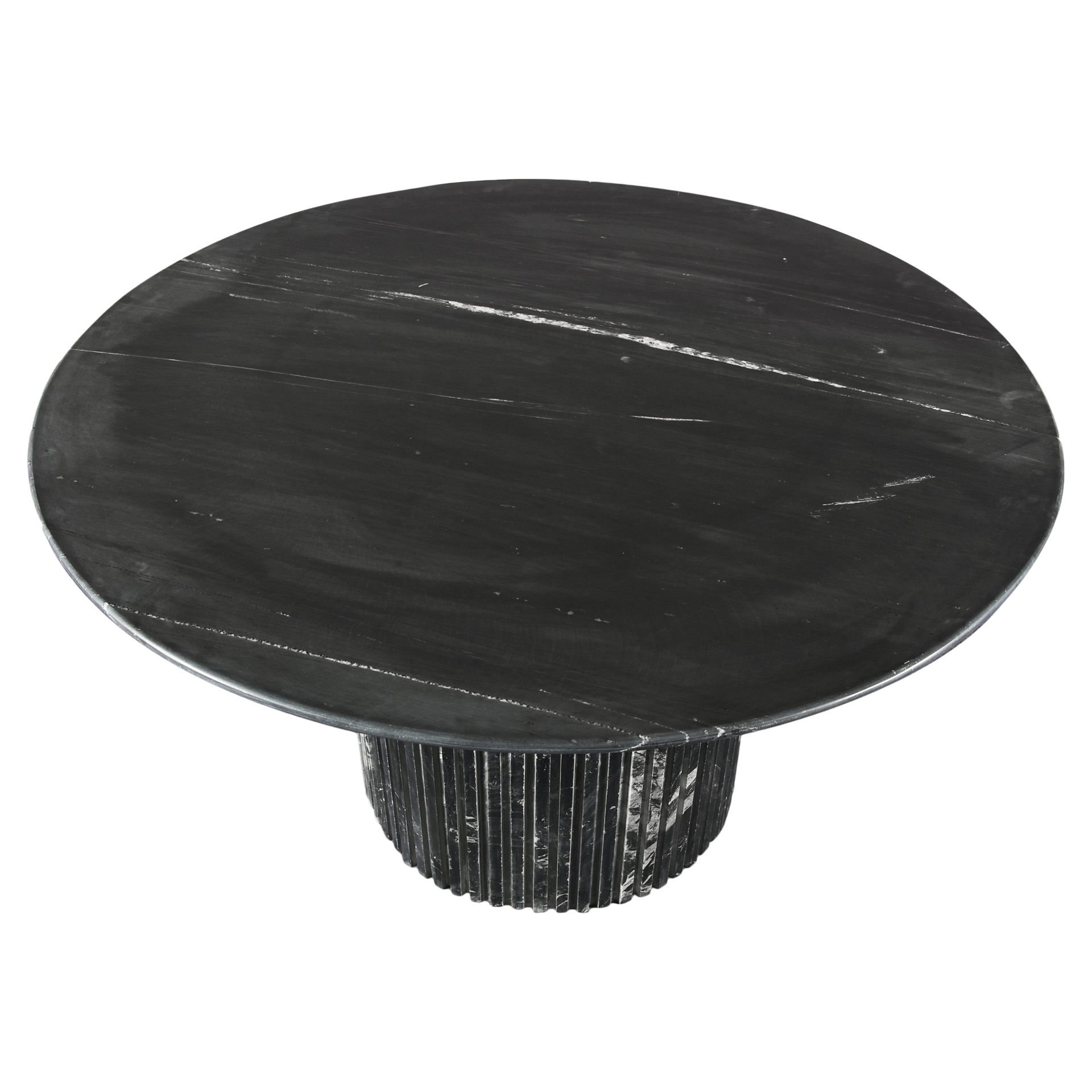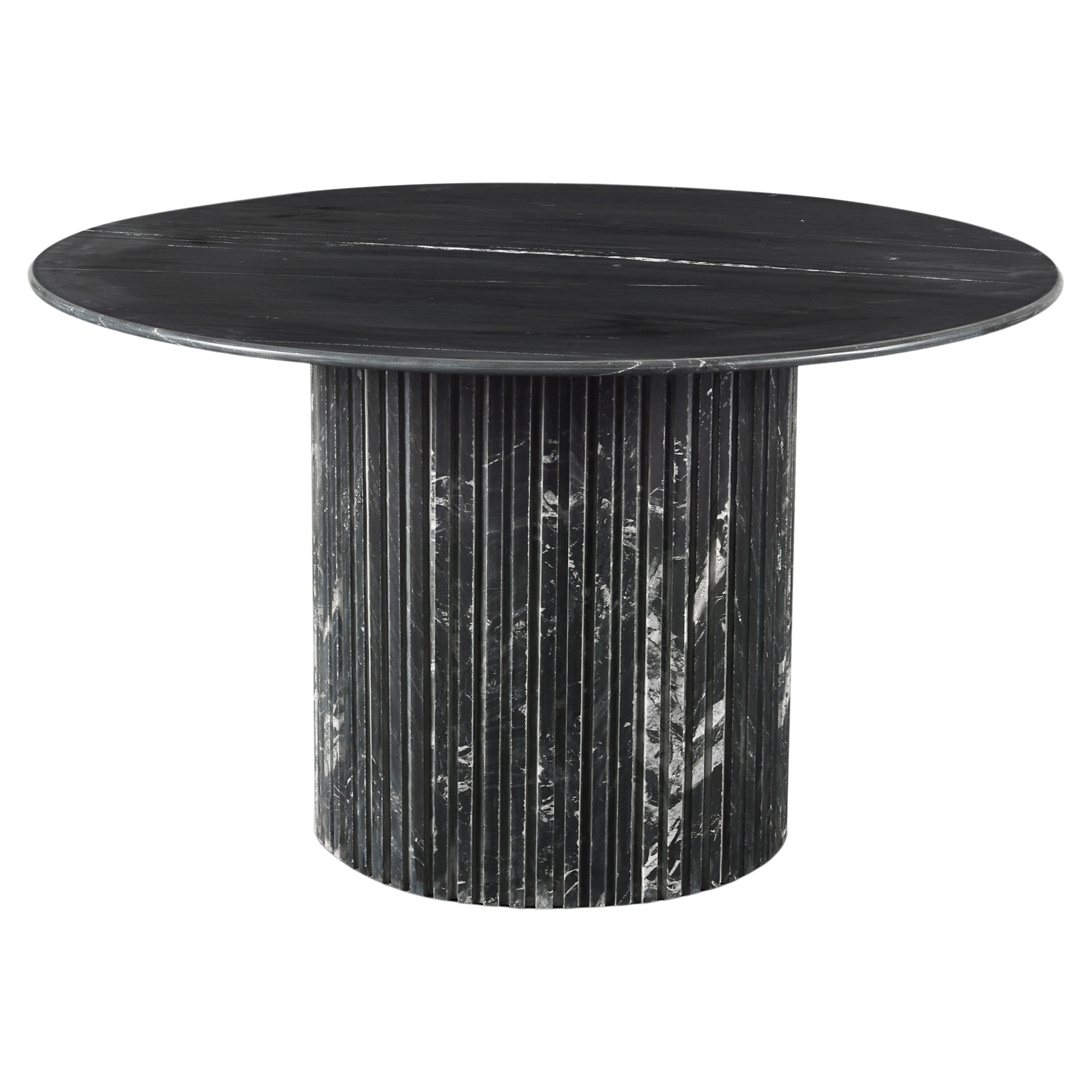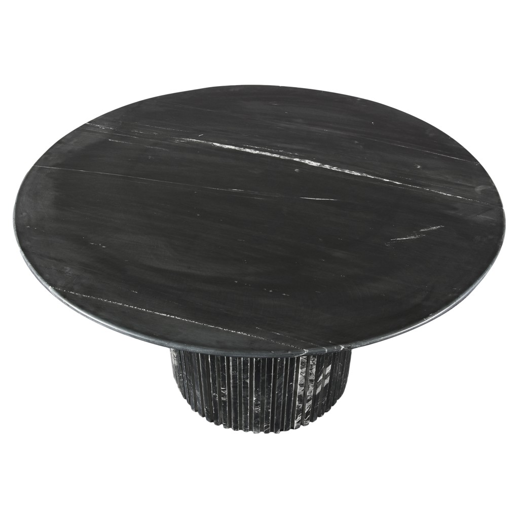 Fabriquée à partir de marbre véritable, chaque table est une oeuvre d'art unique, dotée d'un plateau en marbre noir aux veines blanches complexes.