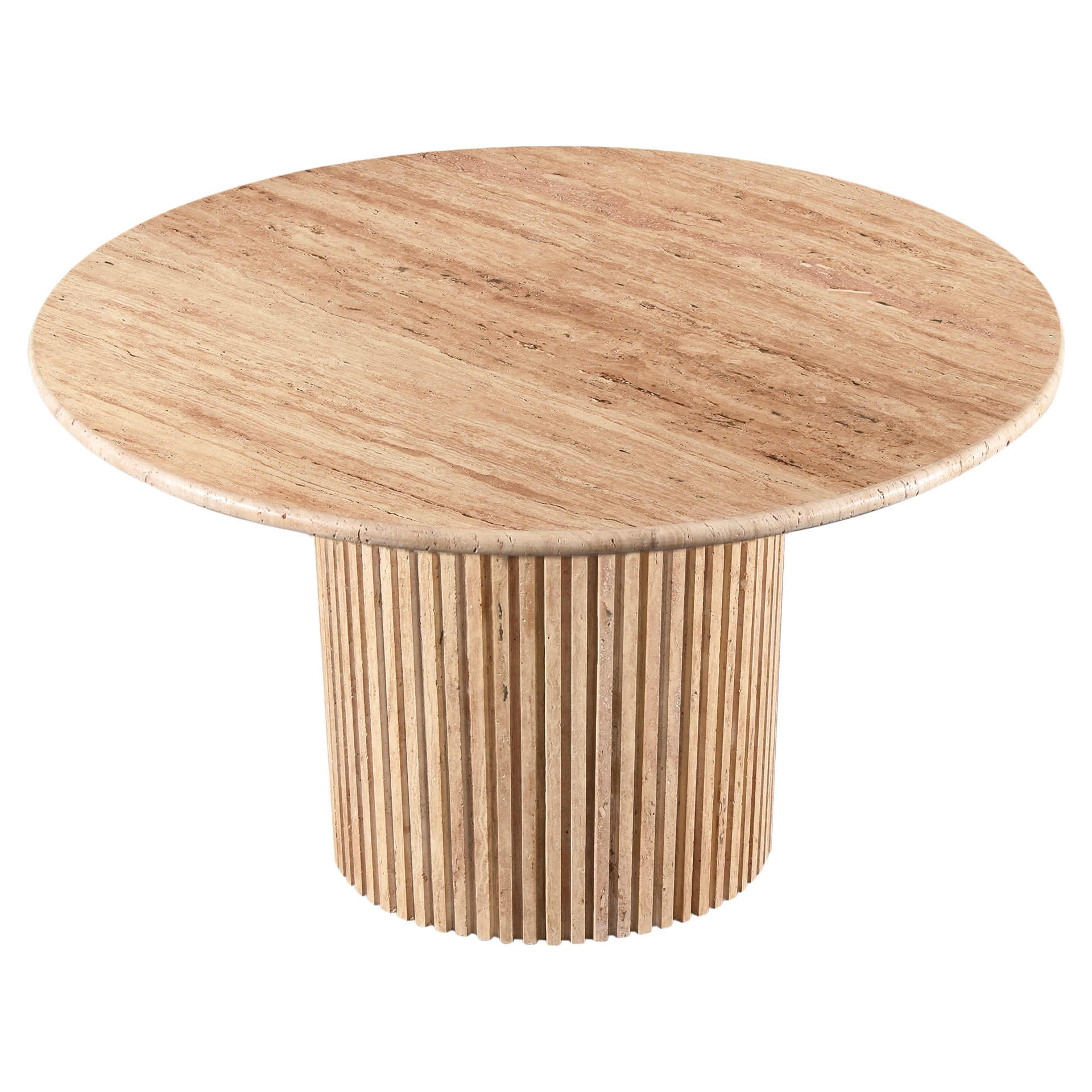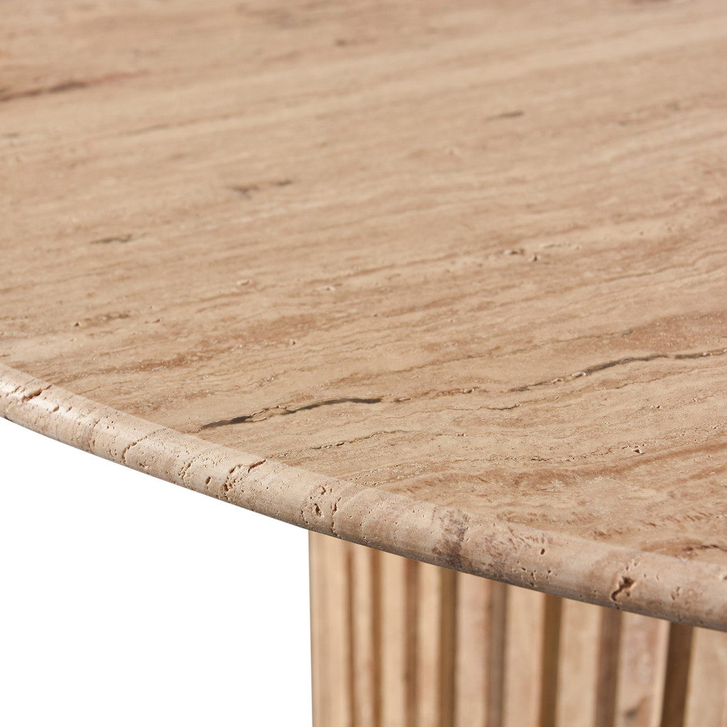 Fabriquée à partir de marbre véritable, chaque table est une oeuvre d'art unique, dotée d'un plateau en marbre beige avec des veines blanches complexes.