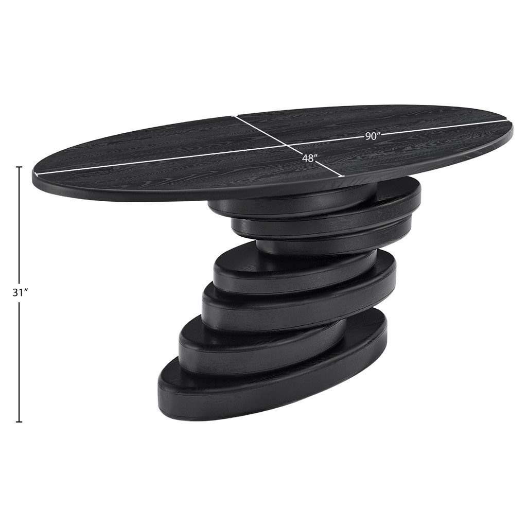 La riche finition en bois de frêne noir ajoute une touche d'opulence au style unique de la table, ce qui en fait un choix idéal pour ceux qui recherchent quelque chose de distinct et d'inspiration artistique.