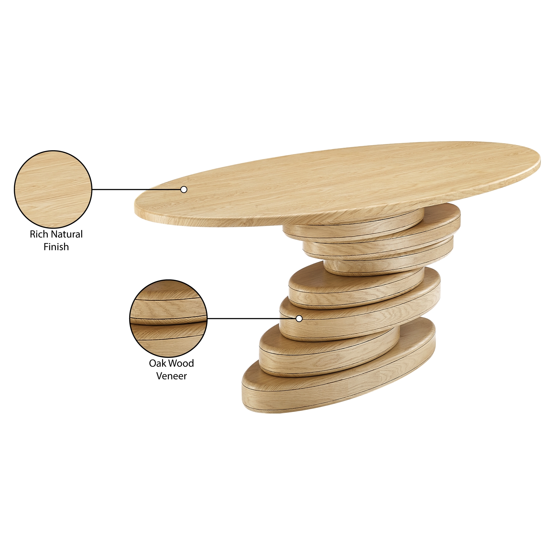 La riche finition en bois de chêne ajoute une touche d'opulence au style unique de la table, ce qui en fait un choix idéal pour ceux qui recherchent quelque chose de distinct et d'inspiration artistique.