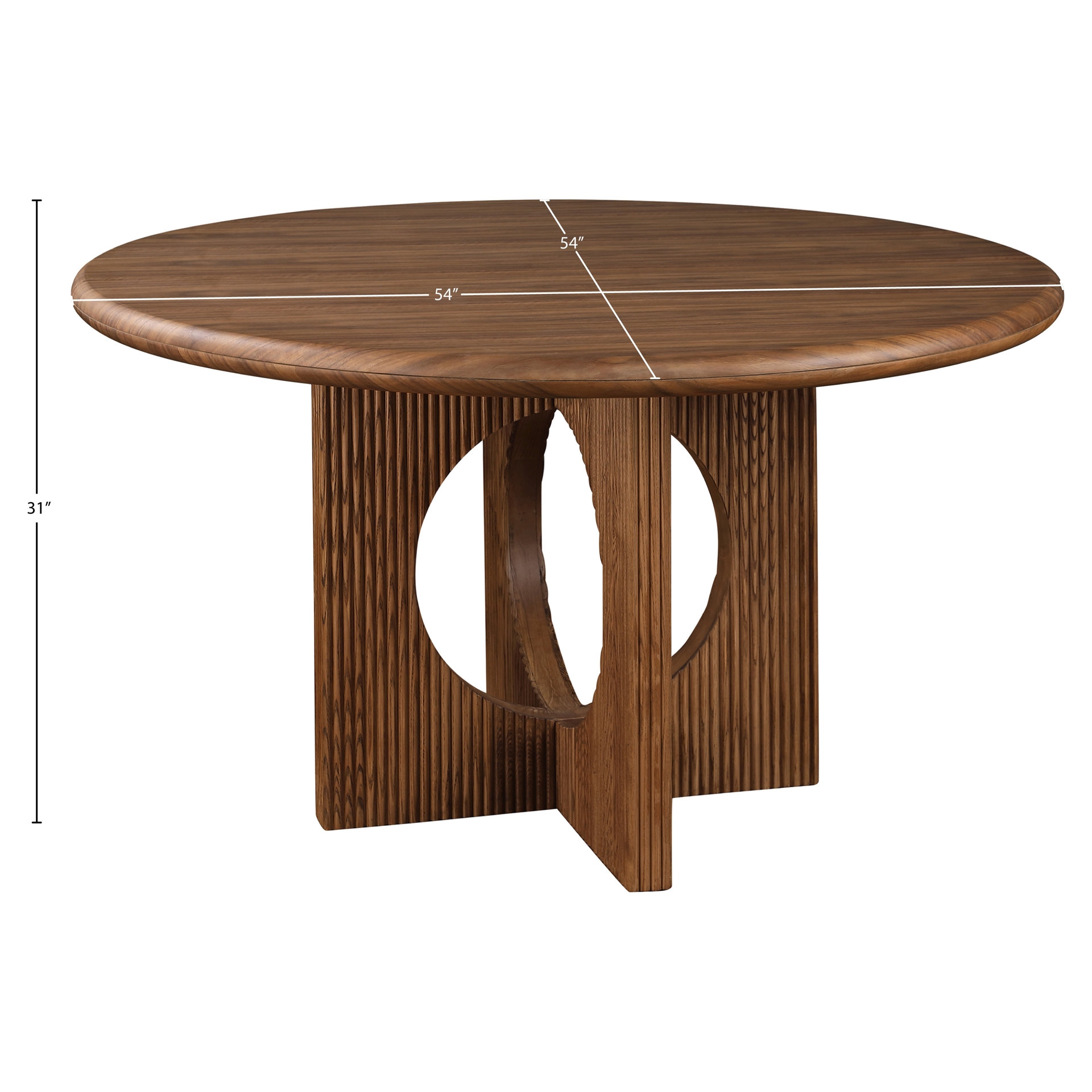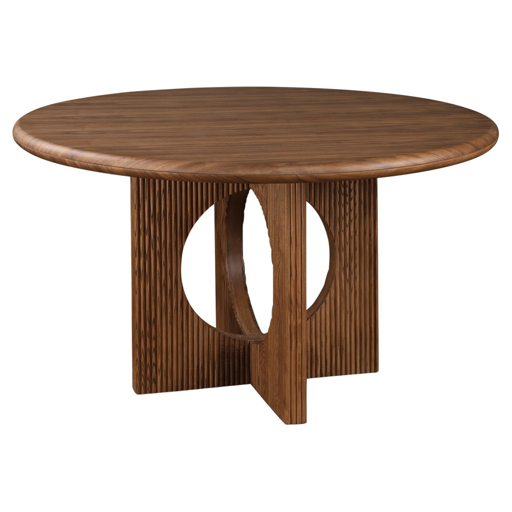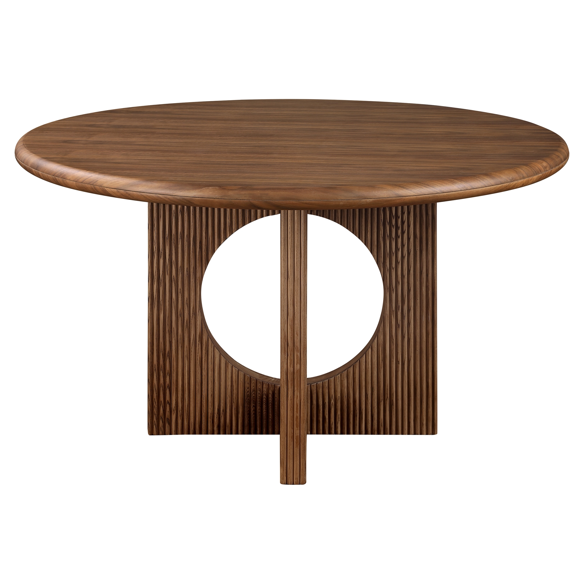 Fabriquée en placage de frêne, cette table ronde présente une riche finition en noyer à la fois élégante et durable.