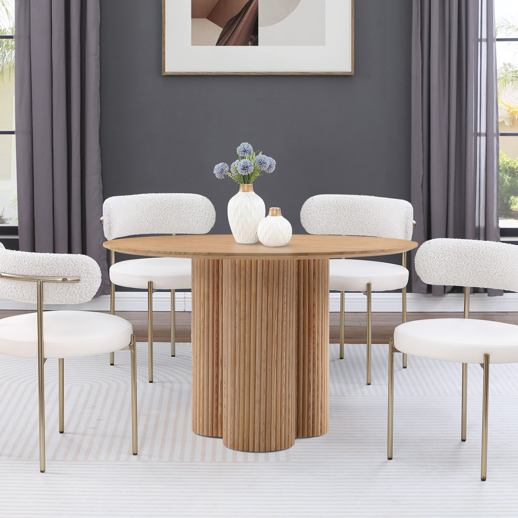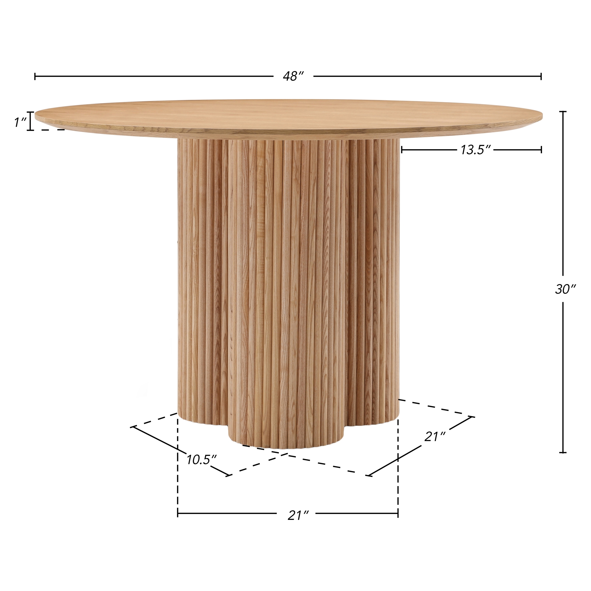 Le plateau de table en placage de chêne naturel mesure 48 pouces, vous offrant beaucoup d'espace pour les couverts et beaucoup d'espace pour les convives.