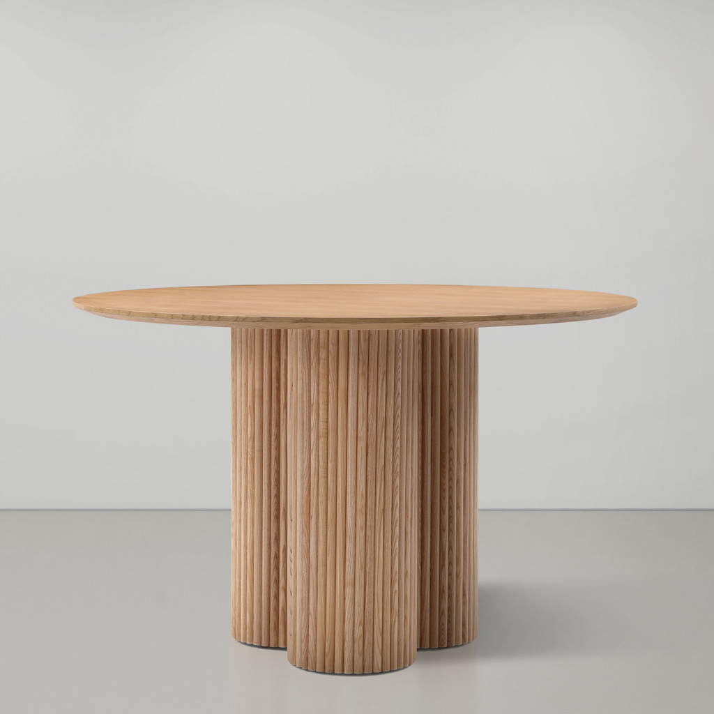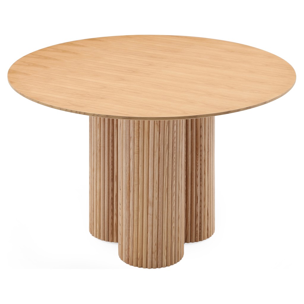 Fabriquée à partir de bois de frêne et de produits en bois, cette table robuste possède une base cannelée en bois massif pour plus d'esthétique.