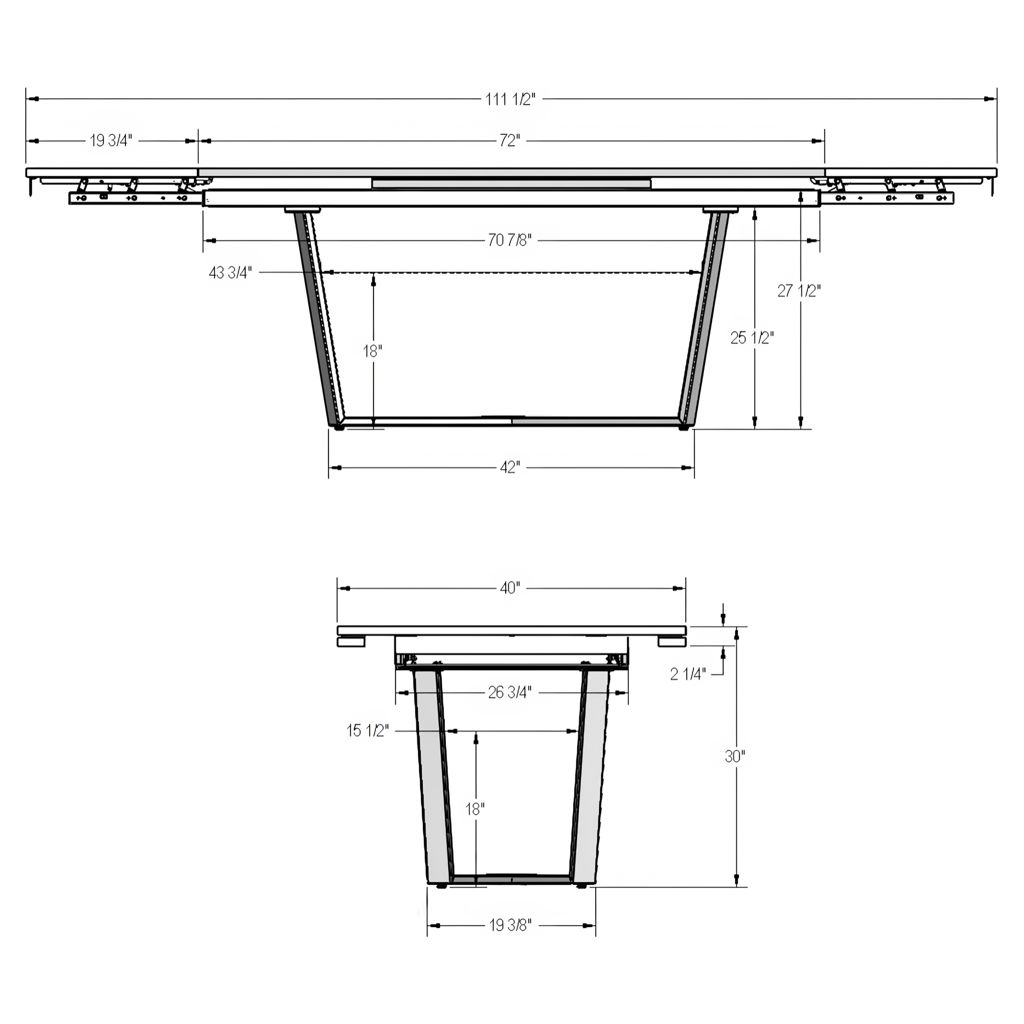 • Base de table : 26 3/4 X 7078 X 27 1/2