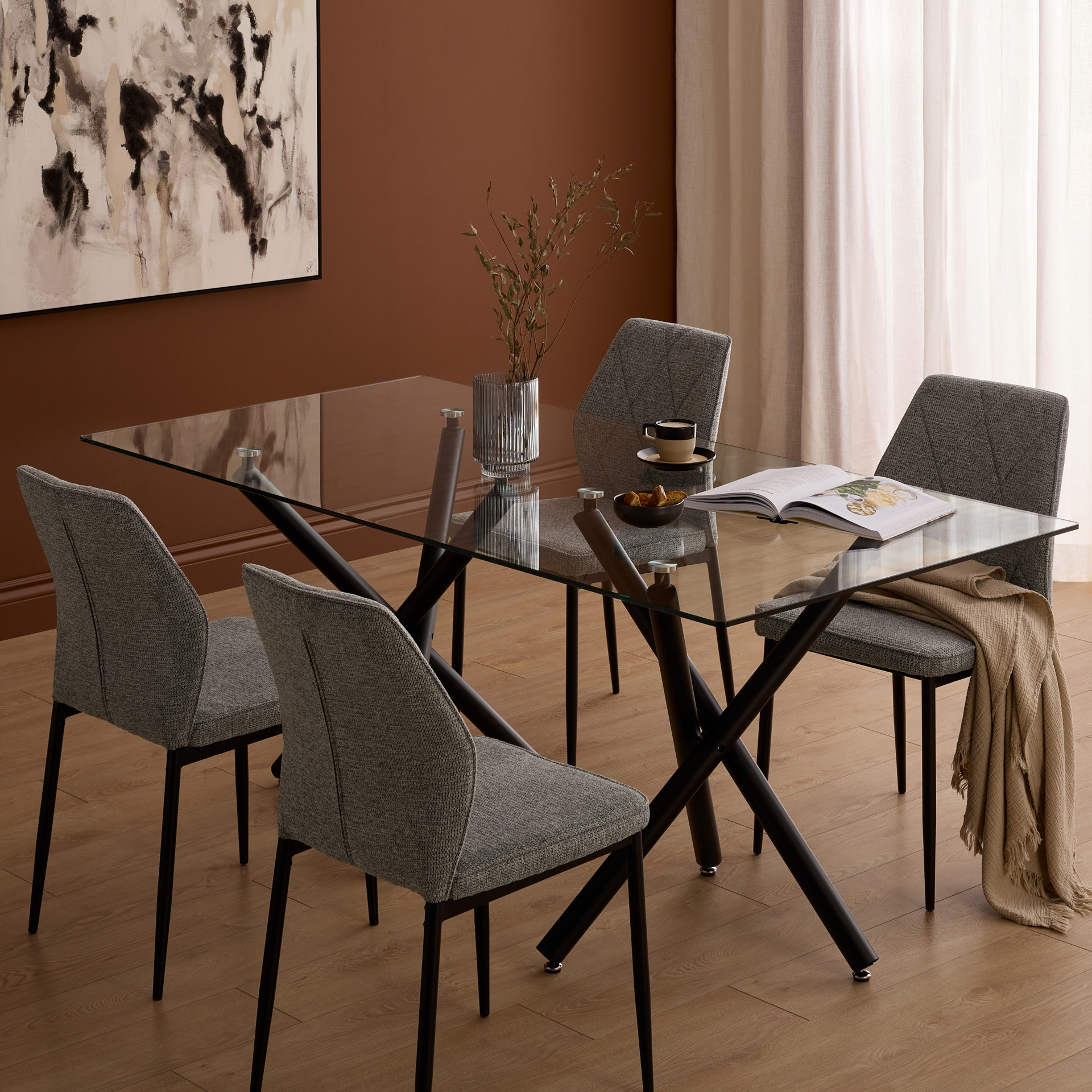 Cette table présente un design contemporain et minimaliste qui s’intègre facilement à différents styles de décor. Parfaite pour la salle à manger, elle combine légèreté visuelle et robustesse.